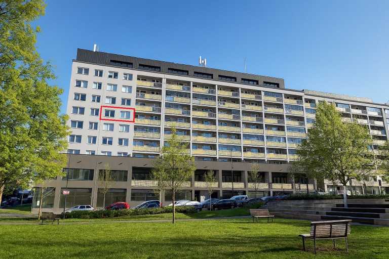 Zrekonstruovaný byt se nachází ve zvýšeném přízemí domu s výtahem. Vstup do domu je z ulice Roháčova.