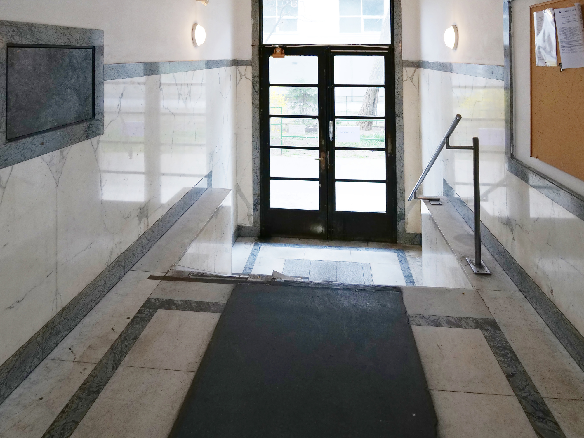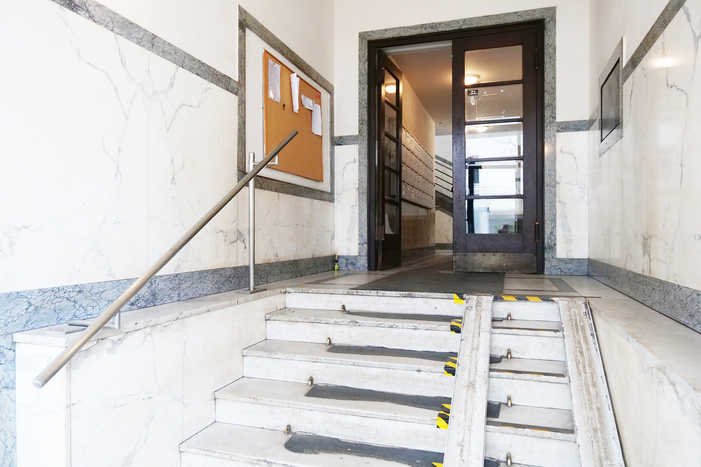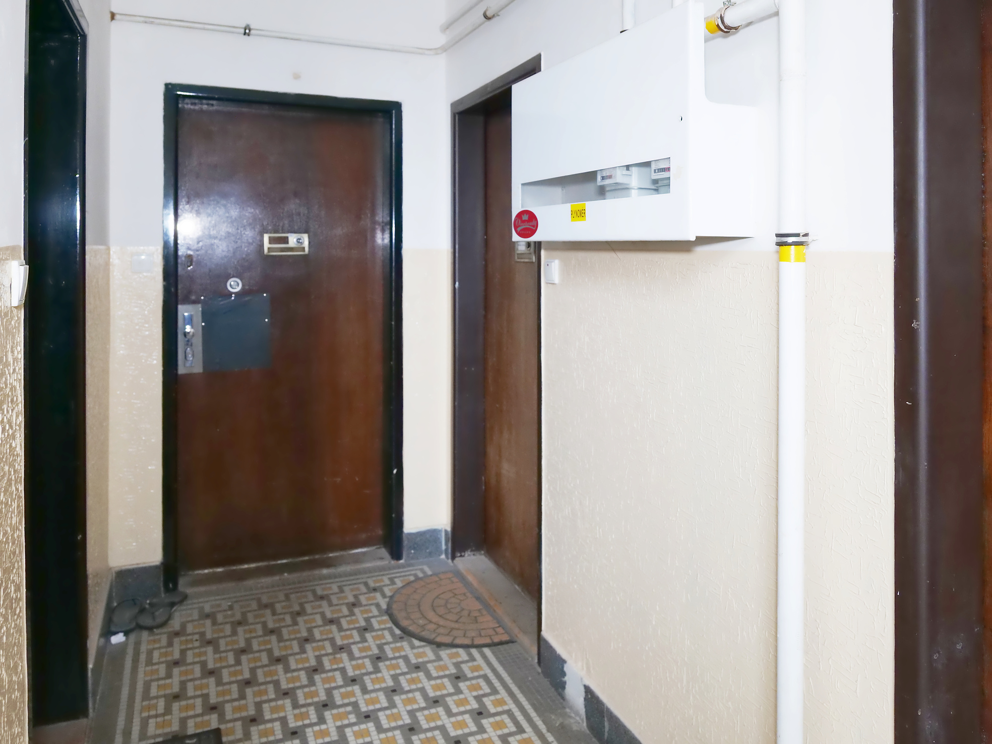 Dispozice: z chodby domu se vchází do předsíně, ze které jsou vstupy do kuchyně, všech pokojů a WC. Z levého pokoje je vstup do koupelny, pravý pokoj má vstup na lodžii orientovanou na sever do ulice Vinohradská.