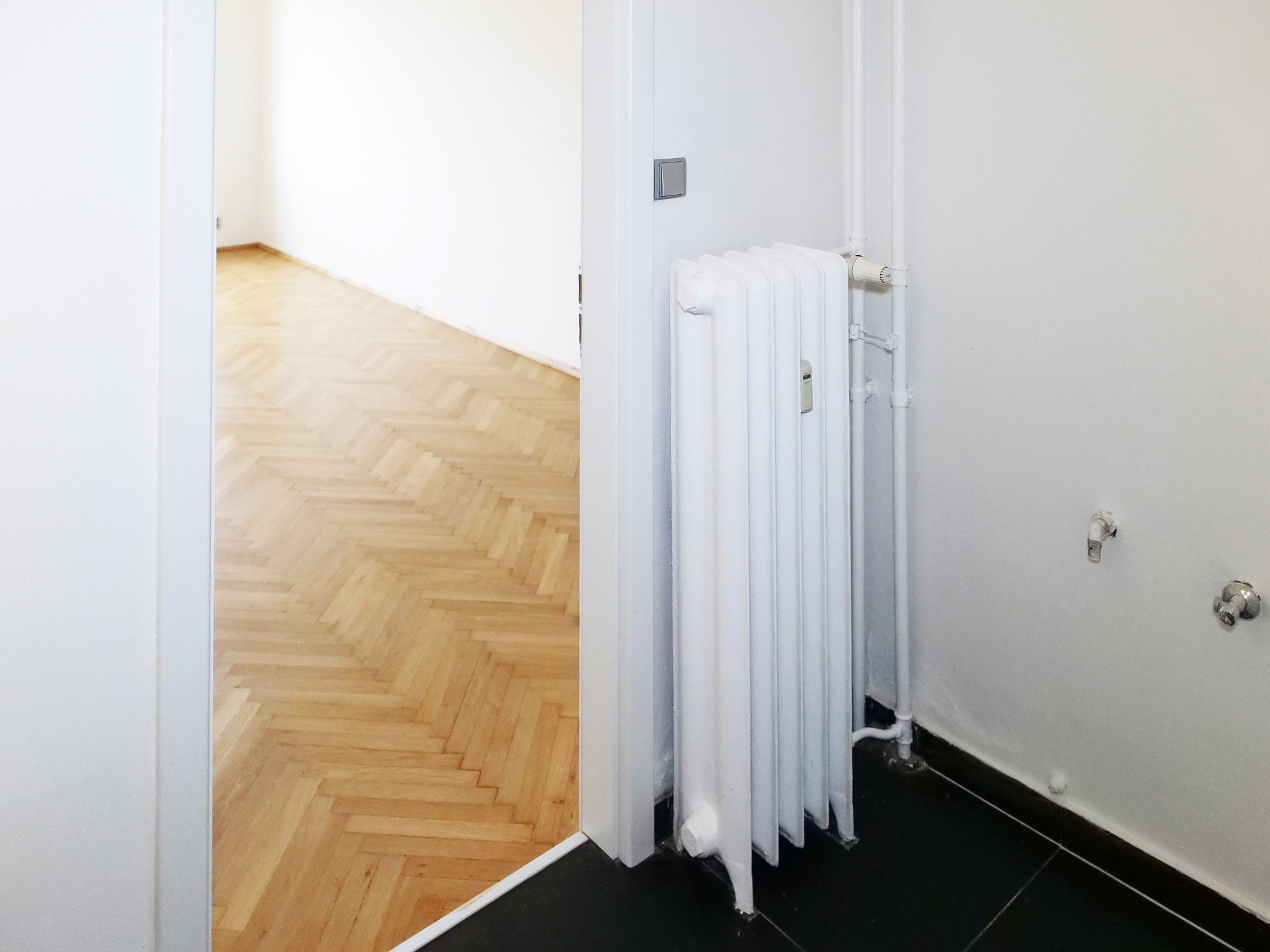 Podlahy: v předsíni a dvou pokojích parkety, v pokoji s lodžií vinyl, v koupelně a kuchyni dlažba. Teplo a teplá voda jsou zajištěny centrálně.
