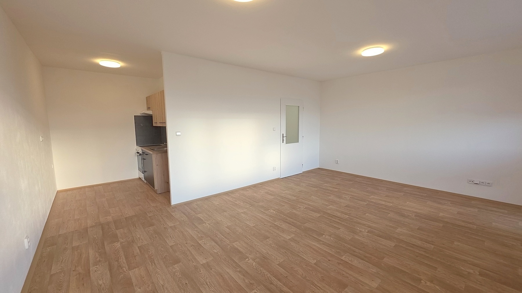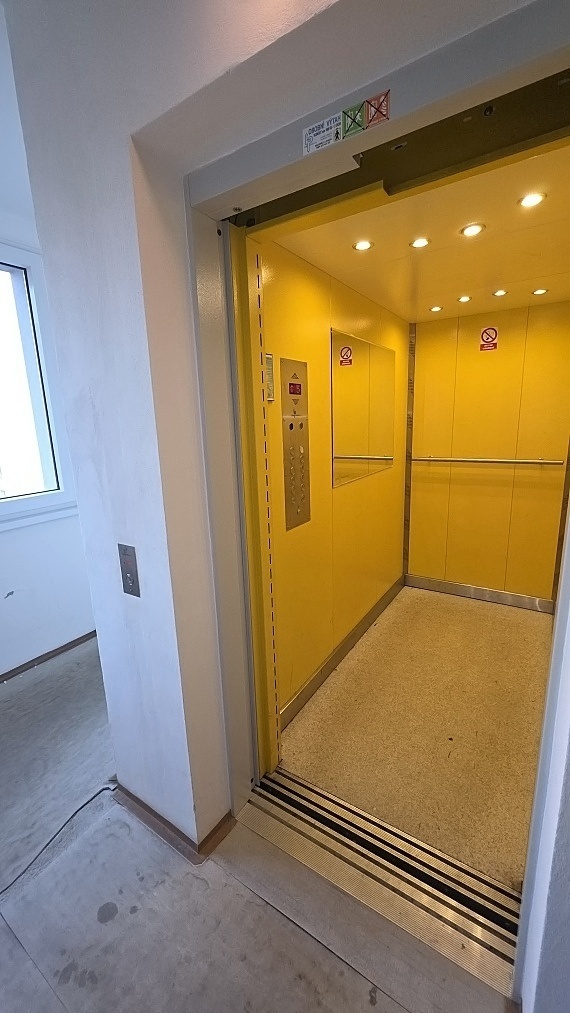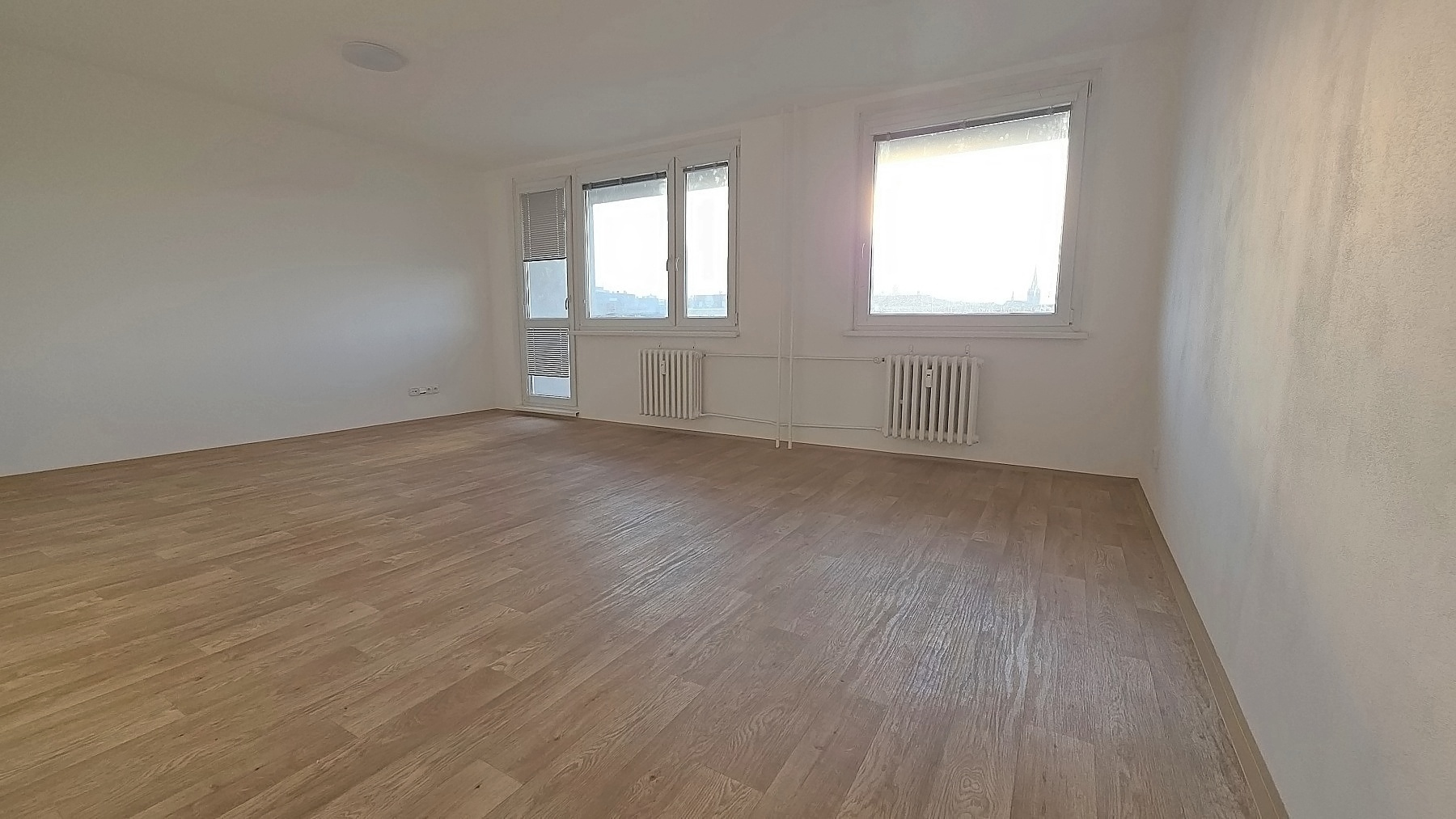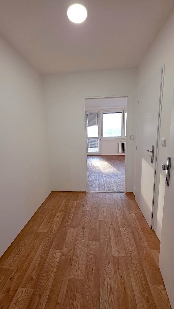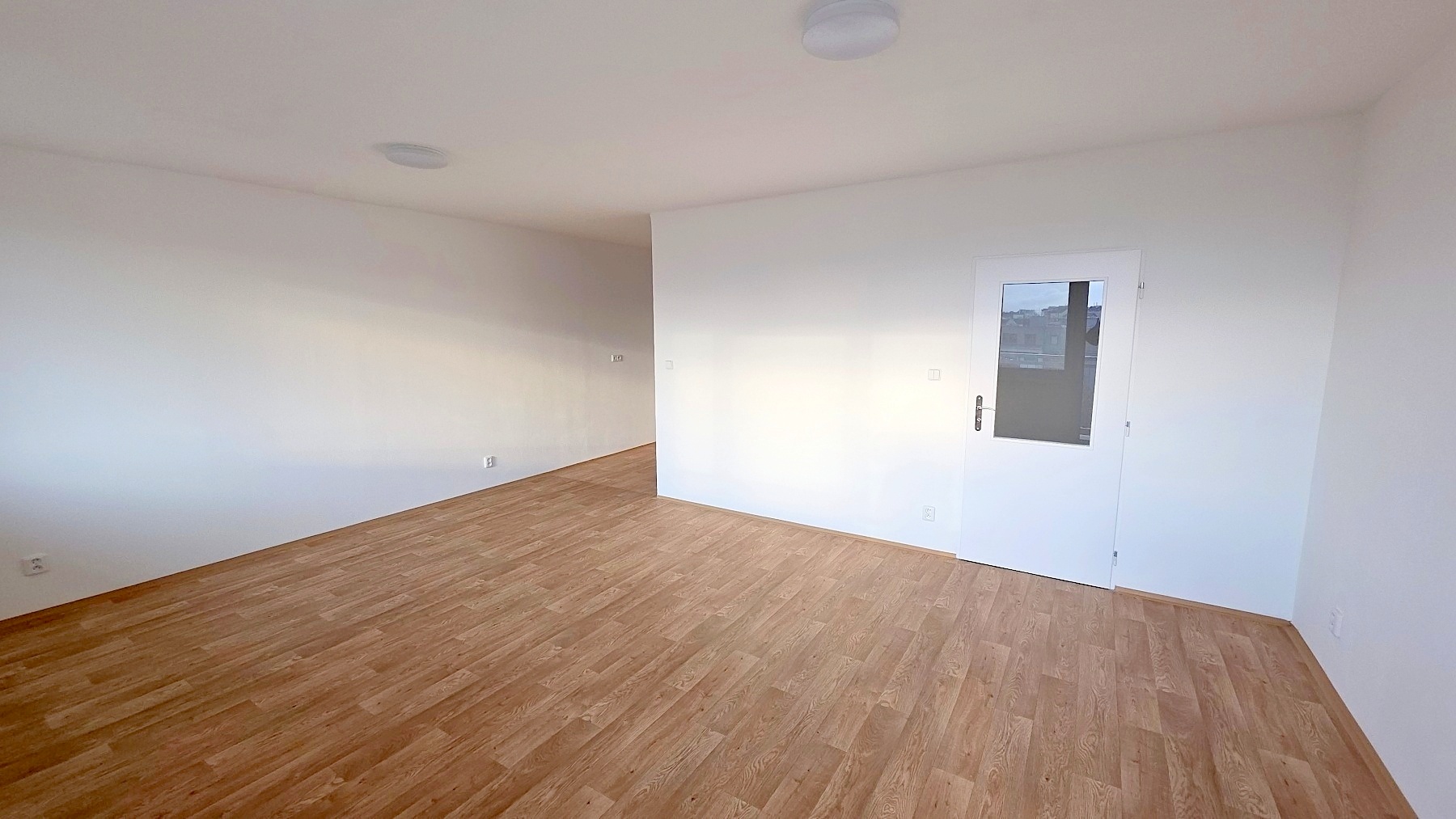 Dispozice: byt se sestává z pokoje s kuch. koutem, koupelny, WC, předsíně a lodžie. Lodžie je orientovaná na západ do Komenského náměstí, s výhledy až na Staré Město a Hrad. Sklepní kóje 2 m2 se nachází ve společných prostorách v 1.PP domu.