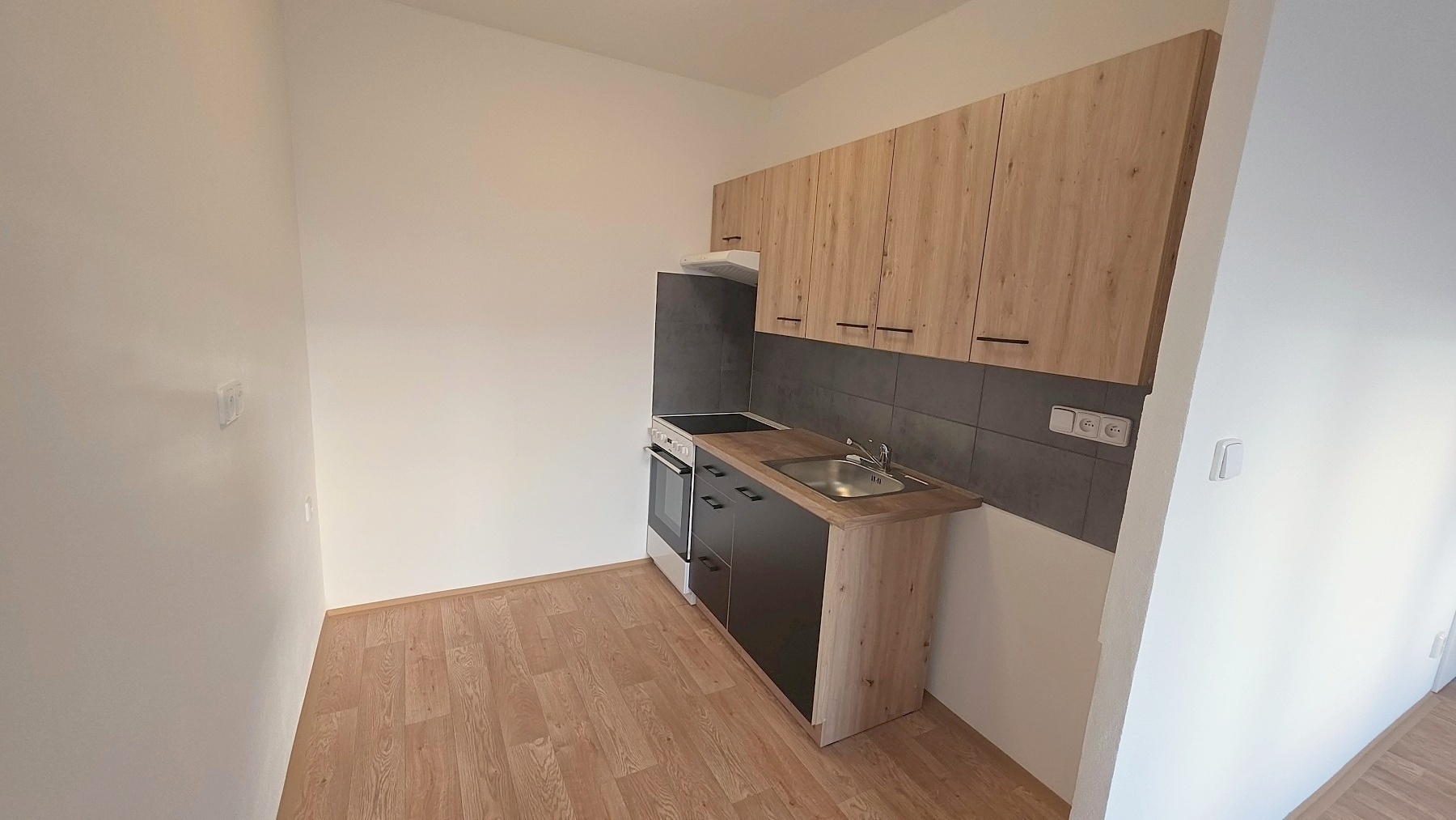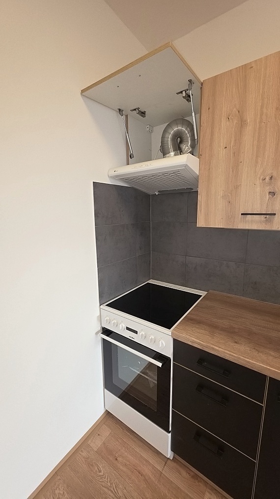 Kuchyňská linka je vybavená dřezem, odtahovou digestoří a sporákem se sklokeramickou deskou a troubou. Pod dřezem je příprava na připojení pračky a/nebo myčky, kterou lze umístit vedle linky.