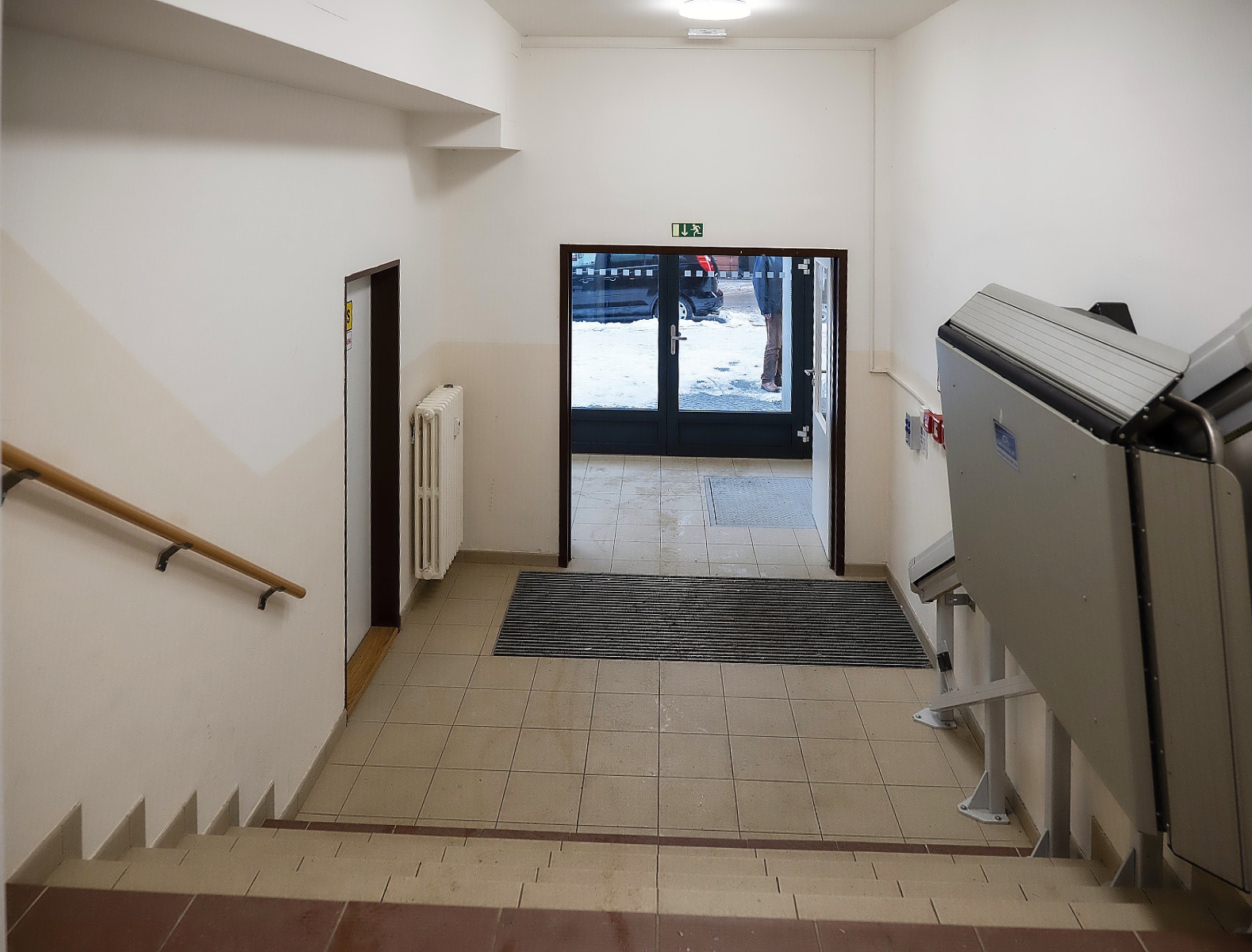 Zrekonstruovaný byt se nachází ve zvýšeném přízemí domu s výtahem. Vstup do domu je z ulice Roháčova.