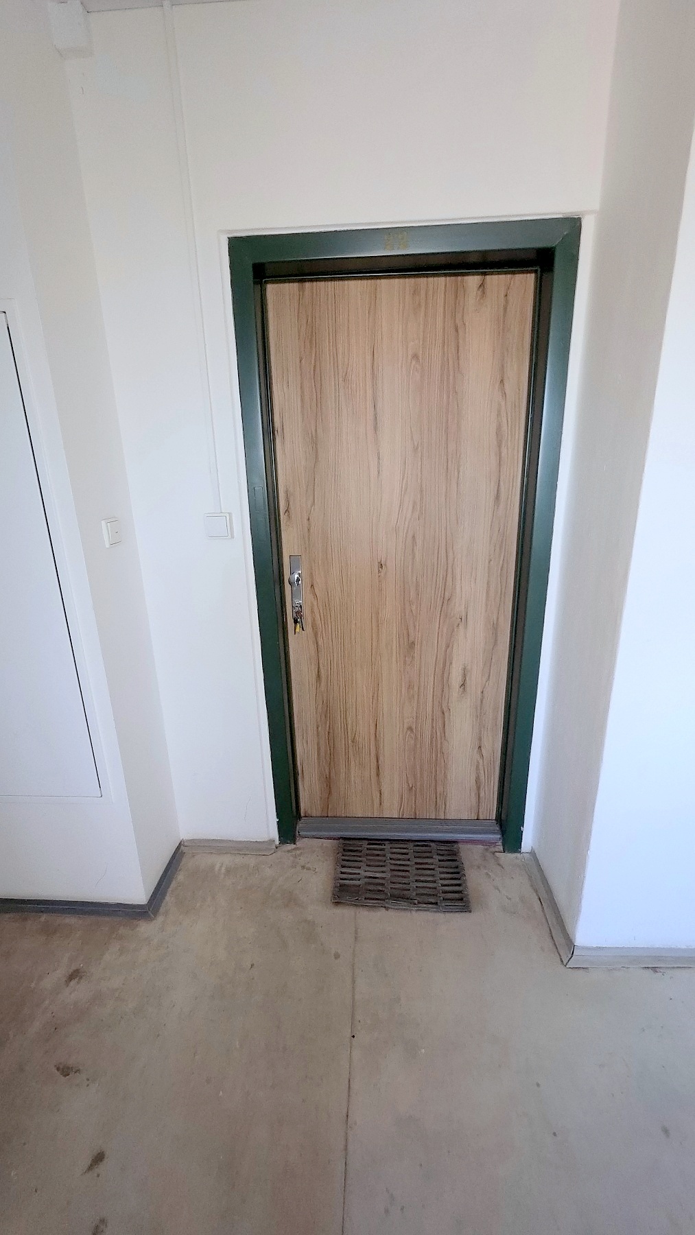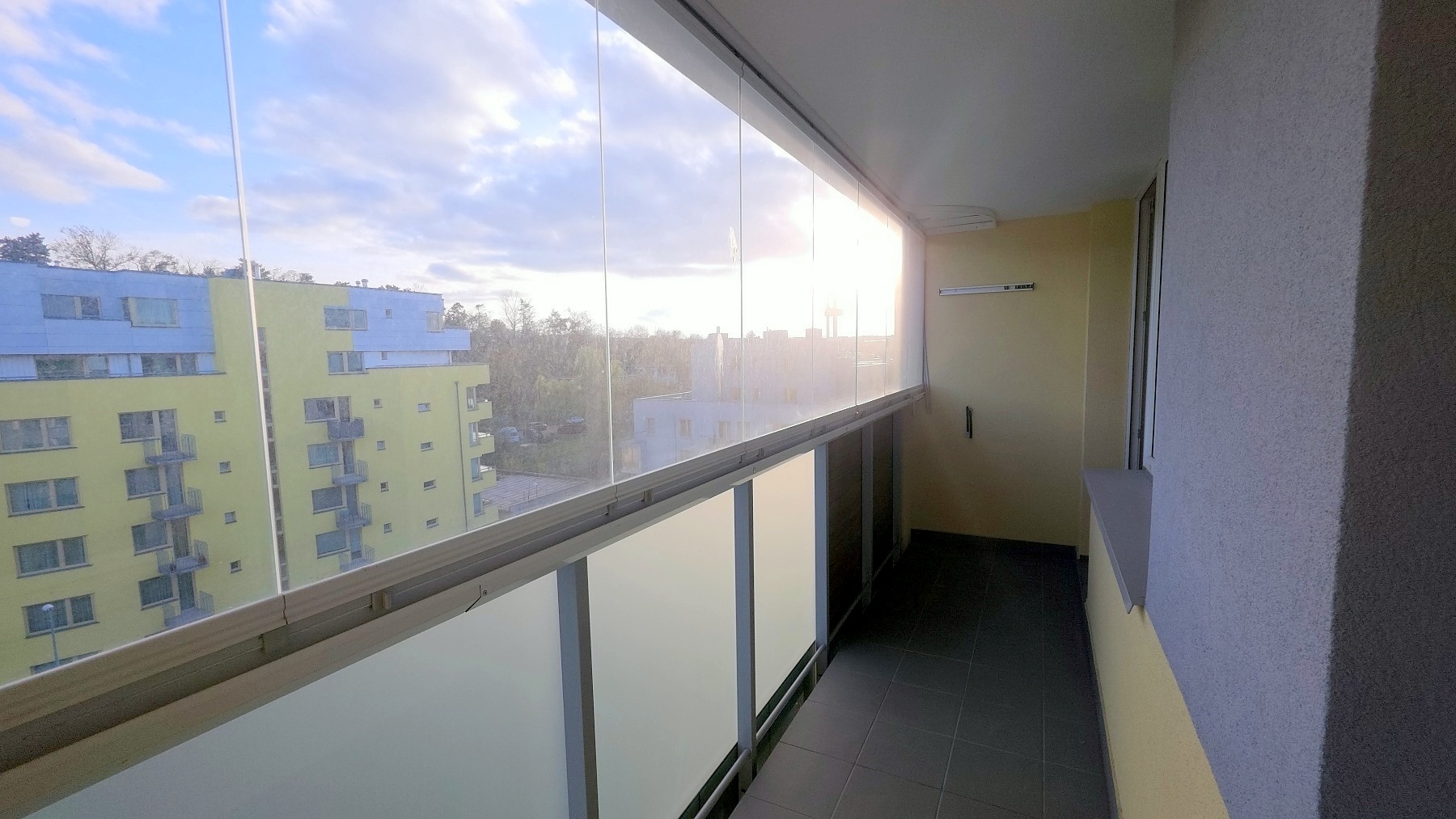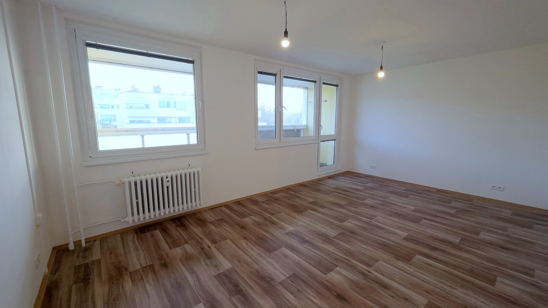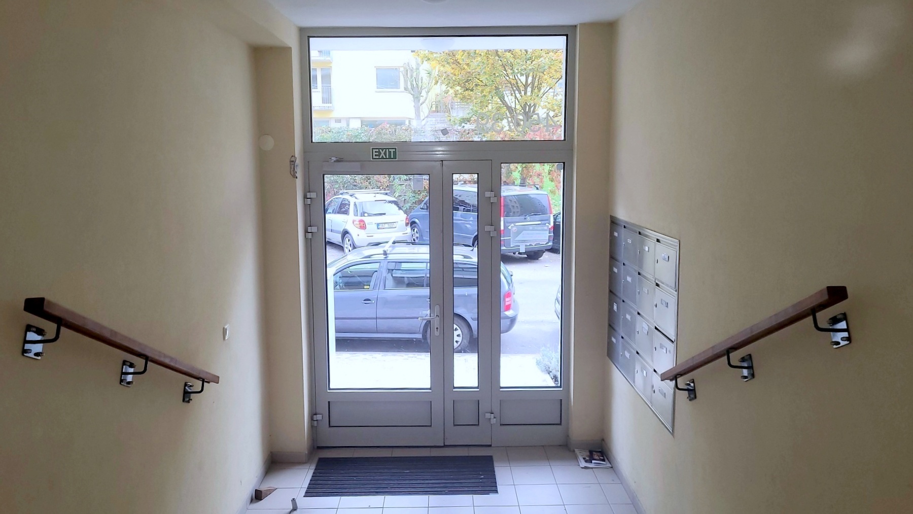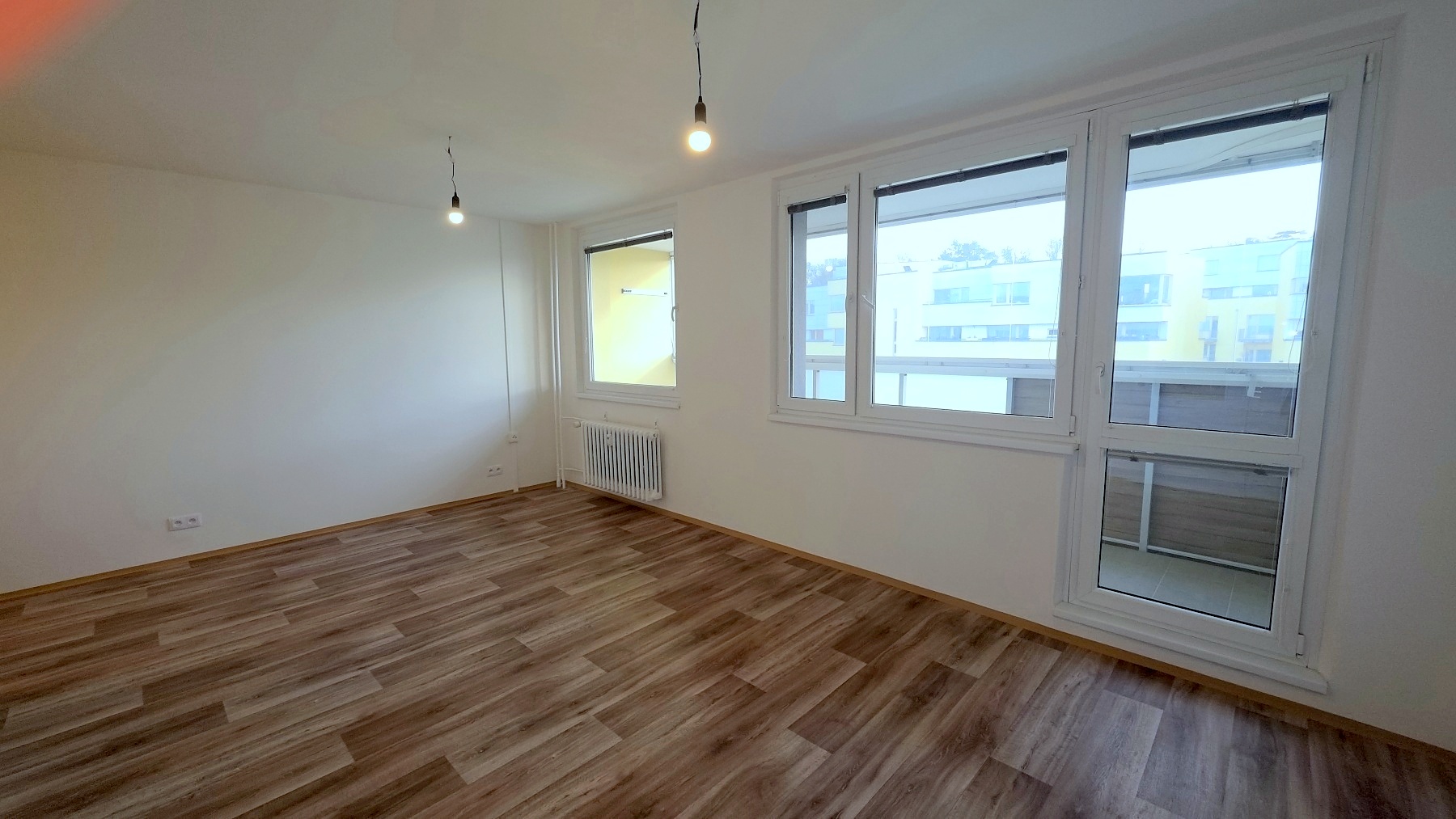 Dispozice: z chodby domu se vchází do předsíně, ze které jsou vstupy do dalších místností bytu. K pokoji přiléhá po celé délce zasklená lodžie orientovaná na jih do ulice Jeseniova.