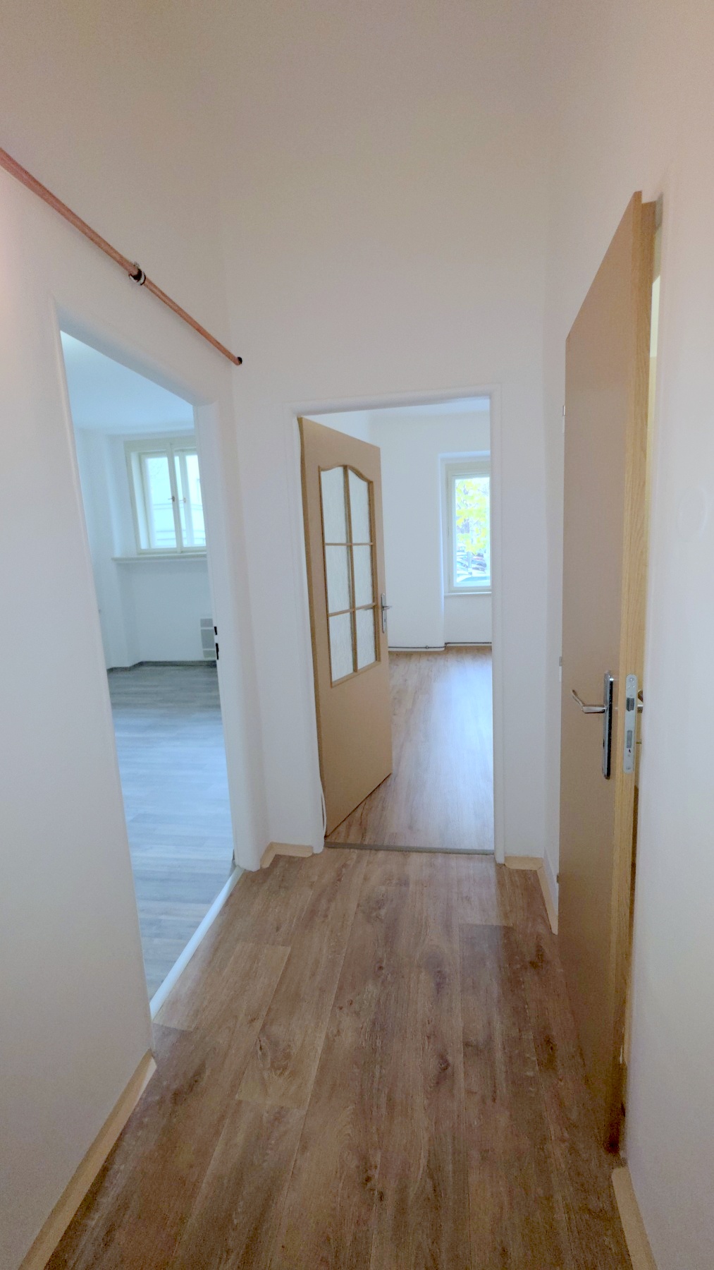 Byt po rekonstrukci se nachází ve zvýšeném přízemí domu