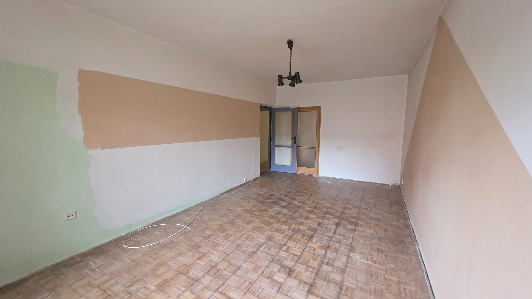 Podlahy: v pokojích původní mozaikové lamelové parkety, v předsíni a kuchyni PVC, v koupelně a WC dlažba Topení a teplá voda jsou zajištěno dálkově. V bytě je odpojena dodávka elektrické energie, nutná revize. Byt je nutno zrekonstruovat s ohledem na dnešní standardy a materiály.