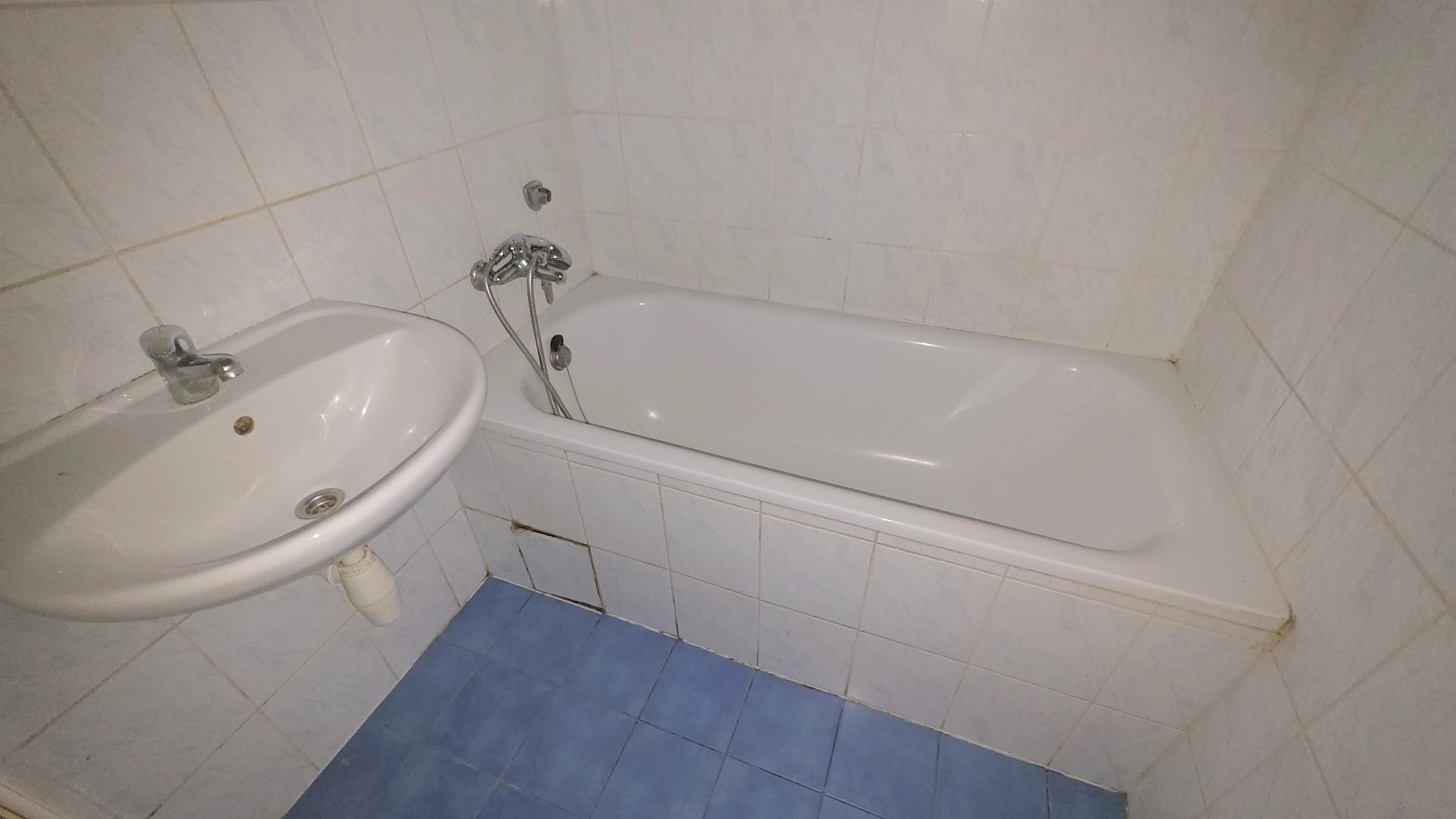 Koupelna je vybavena vanou a umyvadlem, samostatné WC je zařízeno kombi mísou. V předsíni se nacházejí 2 vestavné skříně za hranou životnosti. Výhled z kuchyně a levého pokoje je na severozápad do zeleného vnitrobloku s venkovní posilovnou, orientace obývacího pokoje a pravého pokoje je na jihovýchod do ulice K Lučinám.