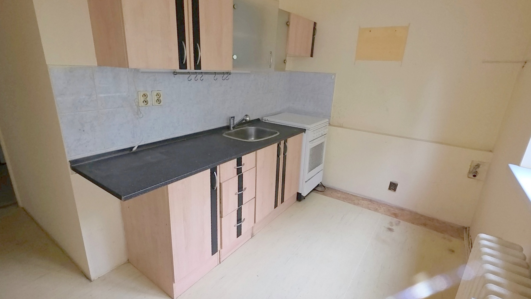 Kuchyň je zařízena kuchyňskou linkou, digestoří a volně stojícím elektrickým sporákem.
