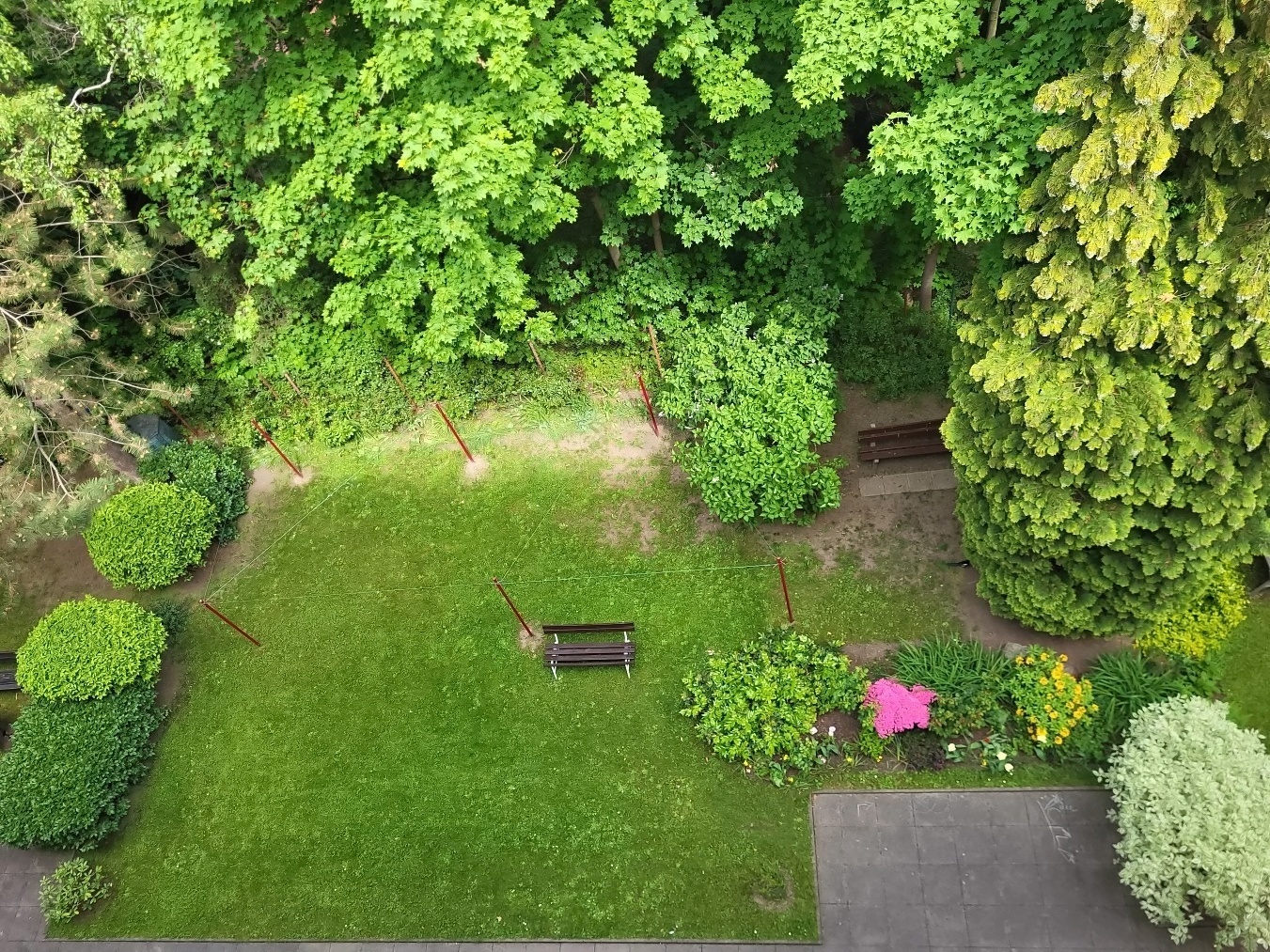 Dispozice: z chodby domu se vchází do předsíně. Z předsíně je vstup do WC a dále do pokoje, ze kterého je vstup do ložnice, kuchyňského koutu a francouzským oknem na terasu. Okna jsou orientována na sever do zeleného vnitrobloku. K bytu patří zděný sklep, který se nachází pod uzamčením ve společných prostorách domu v 1. PP. K užívání je za domem udržovaná zahrada s lavičkami a zelení, která je nejpěknější v celém bloku.