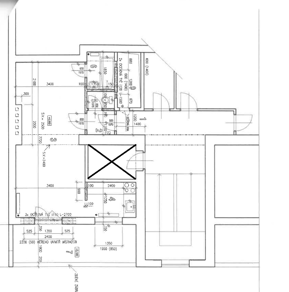 Byt po rekonstrukci se nachází ve 4. patře zrekonstruovaného cihlového domu z r. 1960 s výtahem do 3. patra.