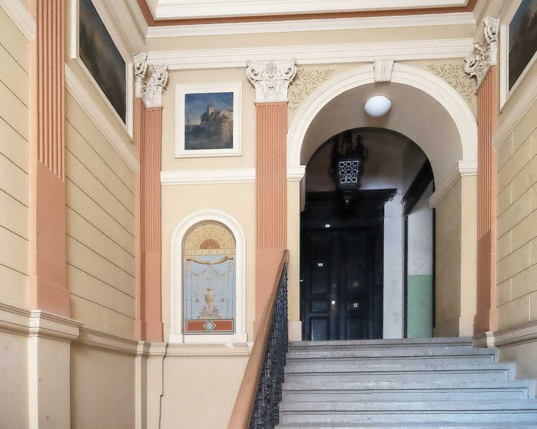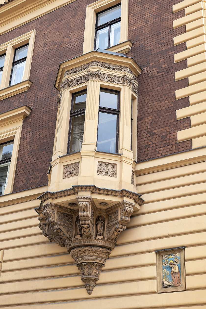 Nárožní neorenesanční dům architekta Wiehla z r. 1885 se nachází v bytovém bloku mezi Janáčkovým nábřežím a ul. Zborovská, v části Zborovské směrem k Malé Straně, na levém břehu Vltavy na úrovni Dětského ostrova v žádané lokalitě Praha 5 - Smíchov. Autorem návrhů sochařské výzdoby je Josef Václav Myslbek. Dům je zapsán v Ústředním seznamu kulturních památek.