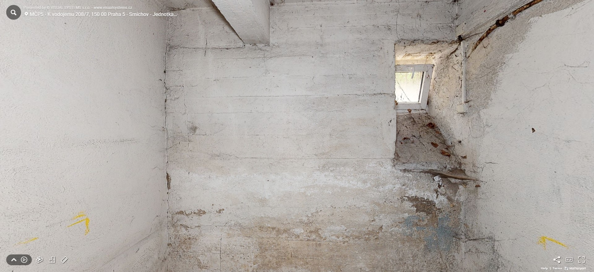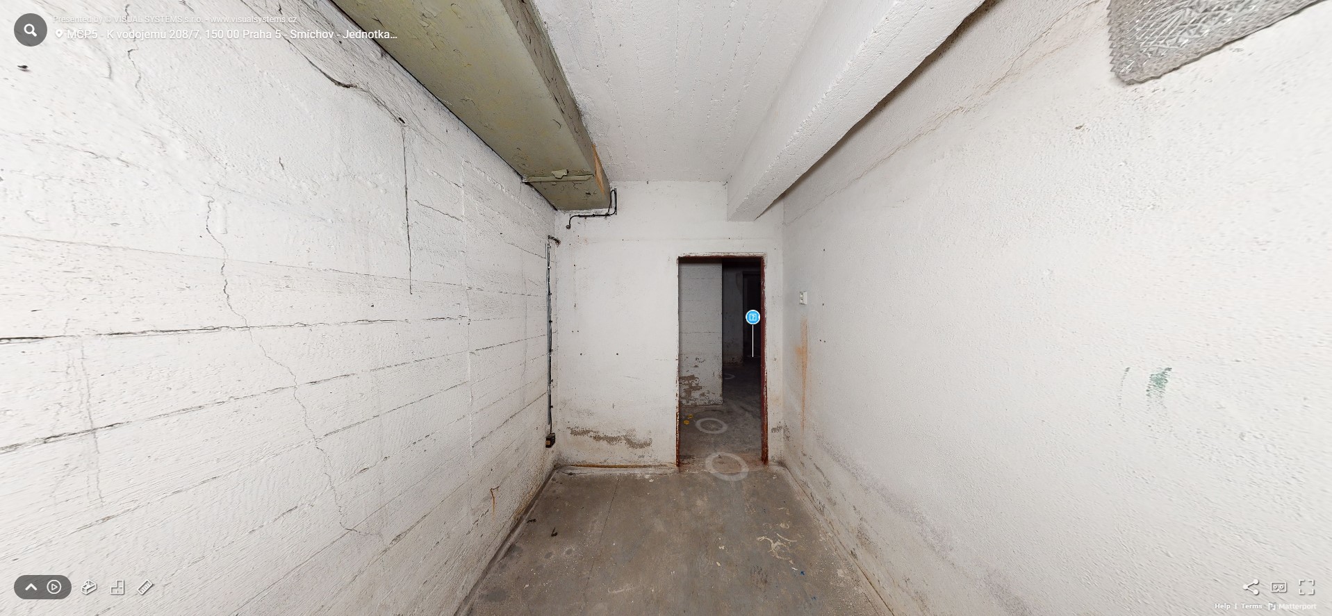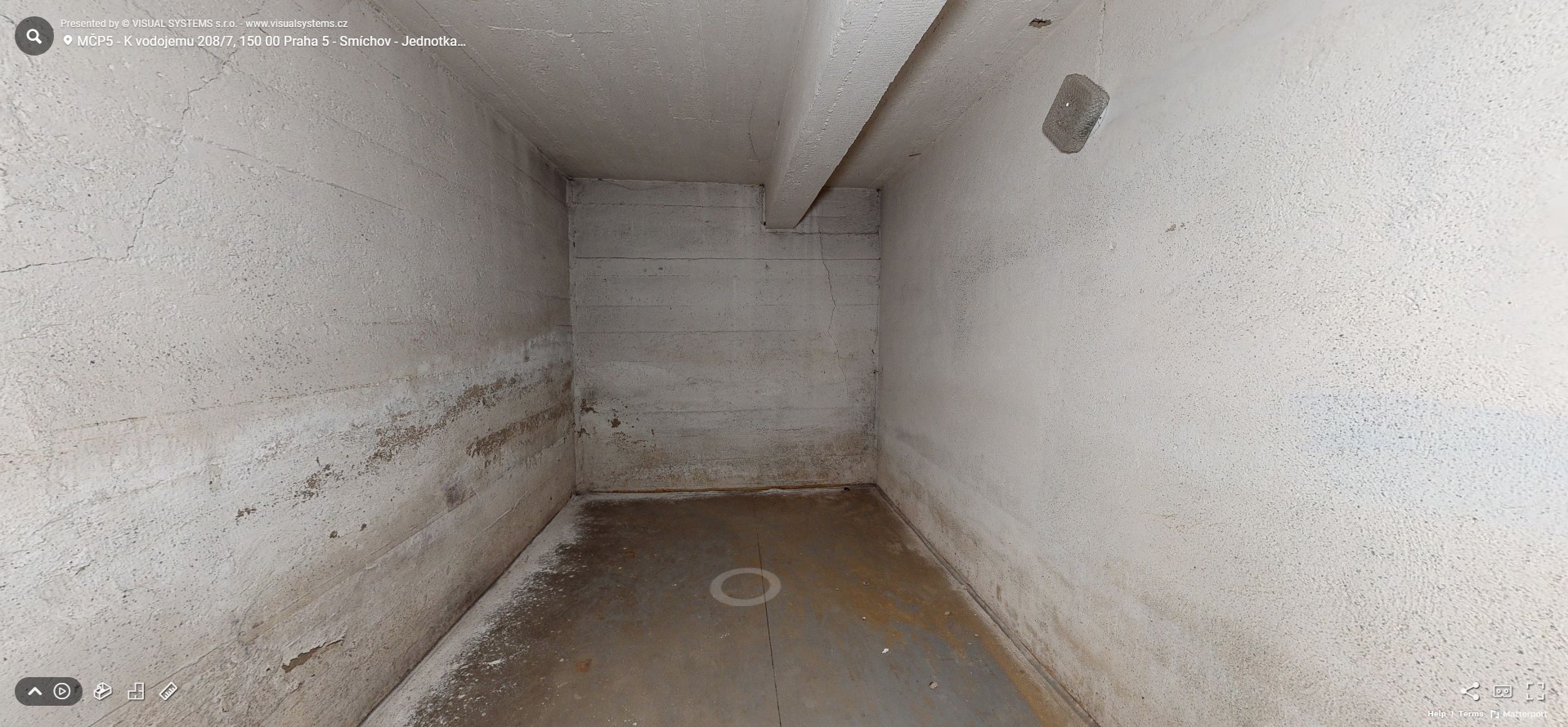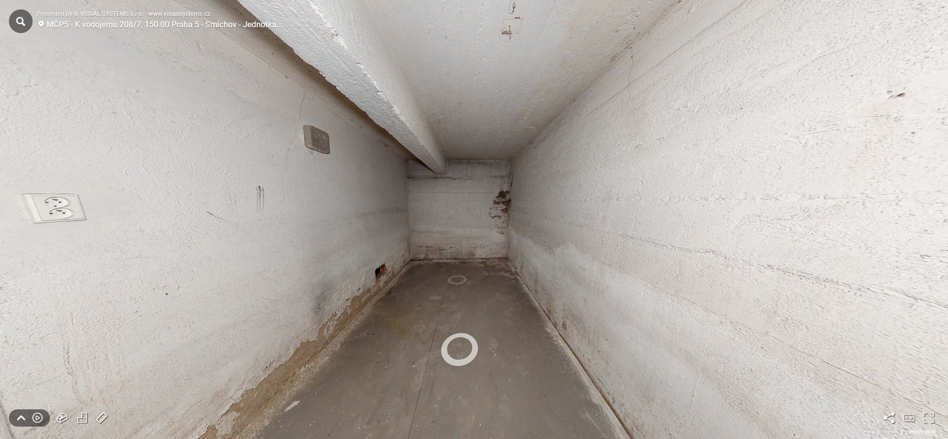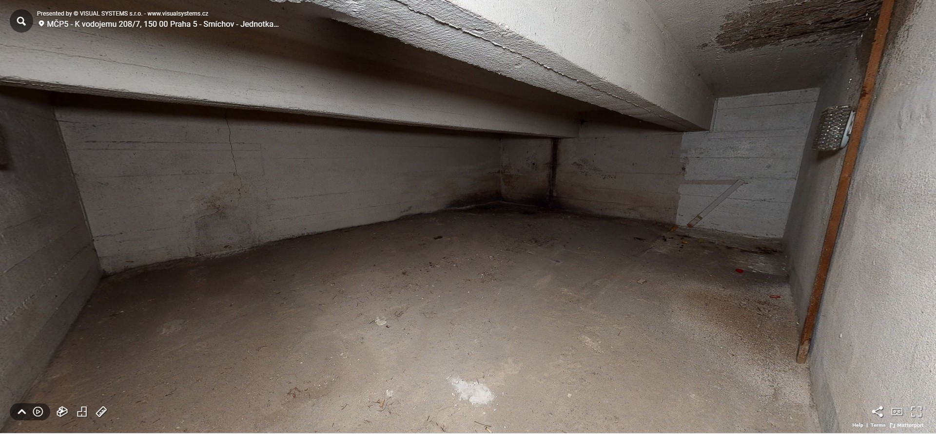 Prostor se skládá z: 12x sklad (18,4, 20,4, 8, 8,1, 11, 13,5, 10,5, 10,6, 13,6, 15,5, 15,7 a 17,6 m2), chodba (33 m2), schodiště (7,1 m2), WC (1,7 m2), koupelna (3,4 m2). Stav: tmavý, místy vlhký, z velké části bez oken, velké členění – malé místnosti, stav rozvodů vody, topení a elektřiny není znám, k rekonstrukci.