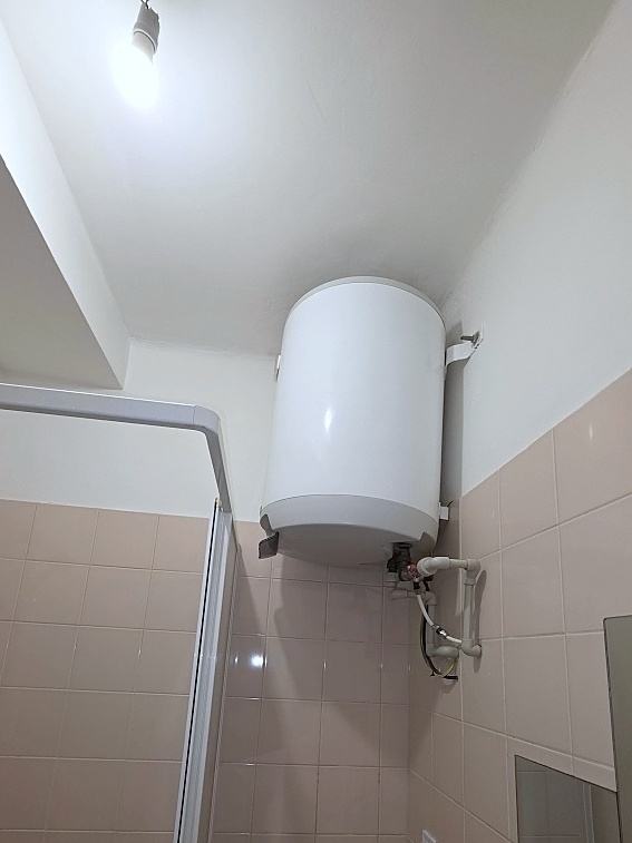 Topení je zajištěno přímotopem, teplá voda el. bojlerem.