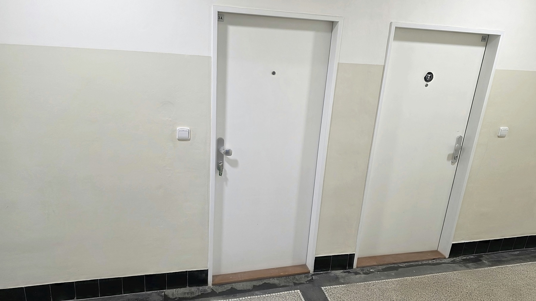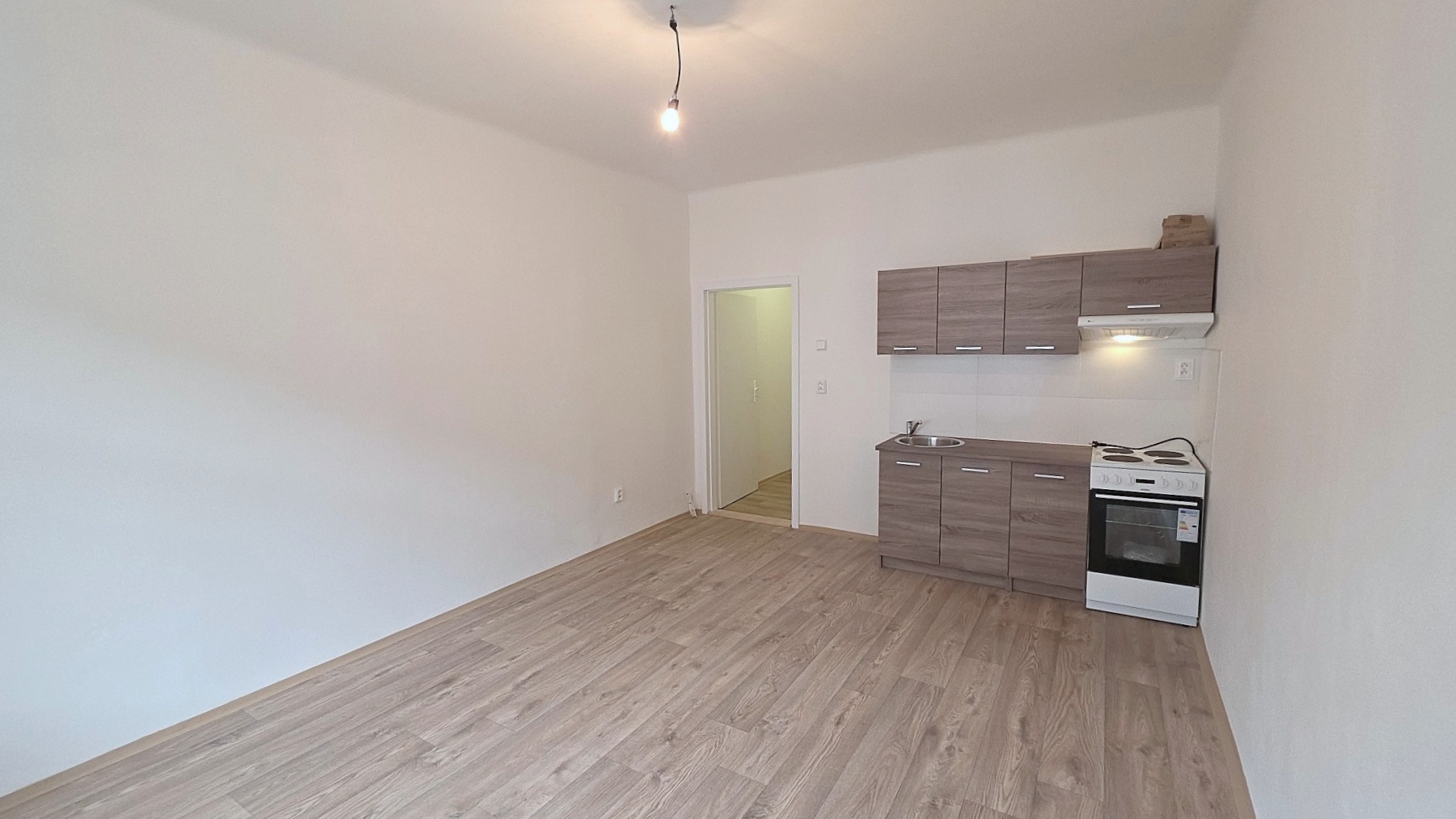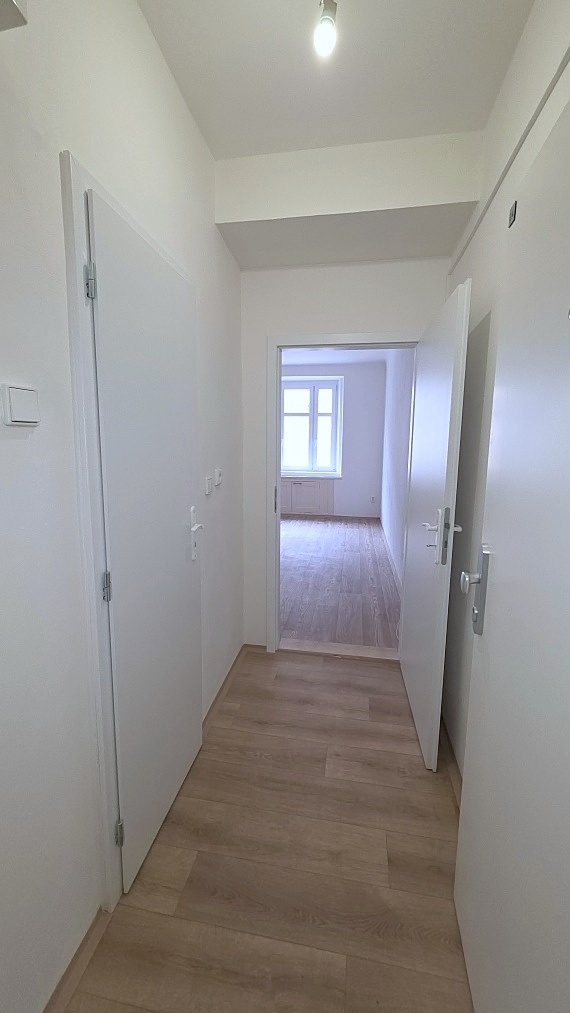 Z chodby domu se vchází do předsíně, ze které jsou vstupy do koupelny s WC a obytné místnosti. Okno je na západ do ulice Jana Želivského.