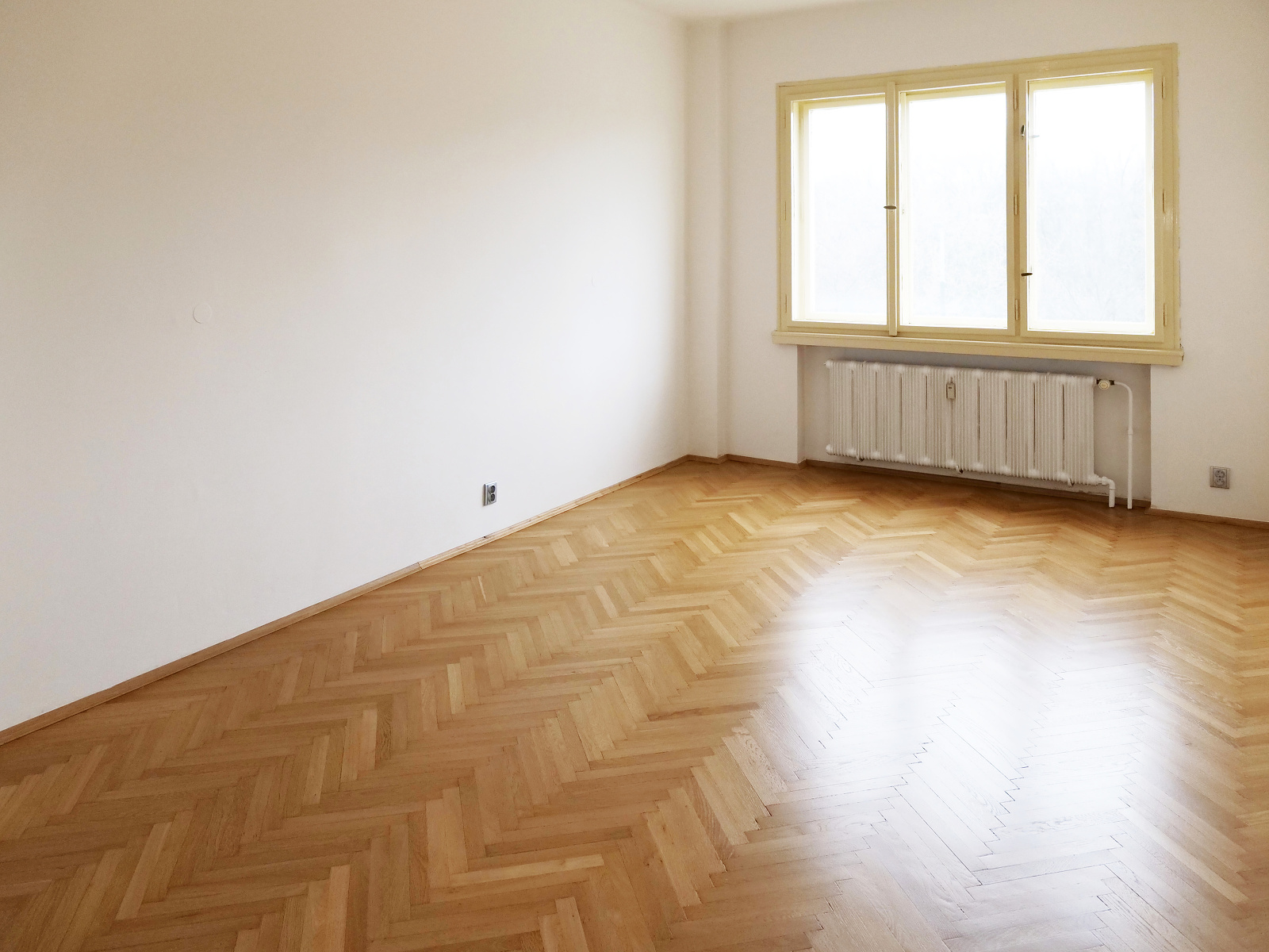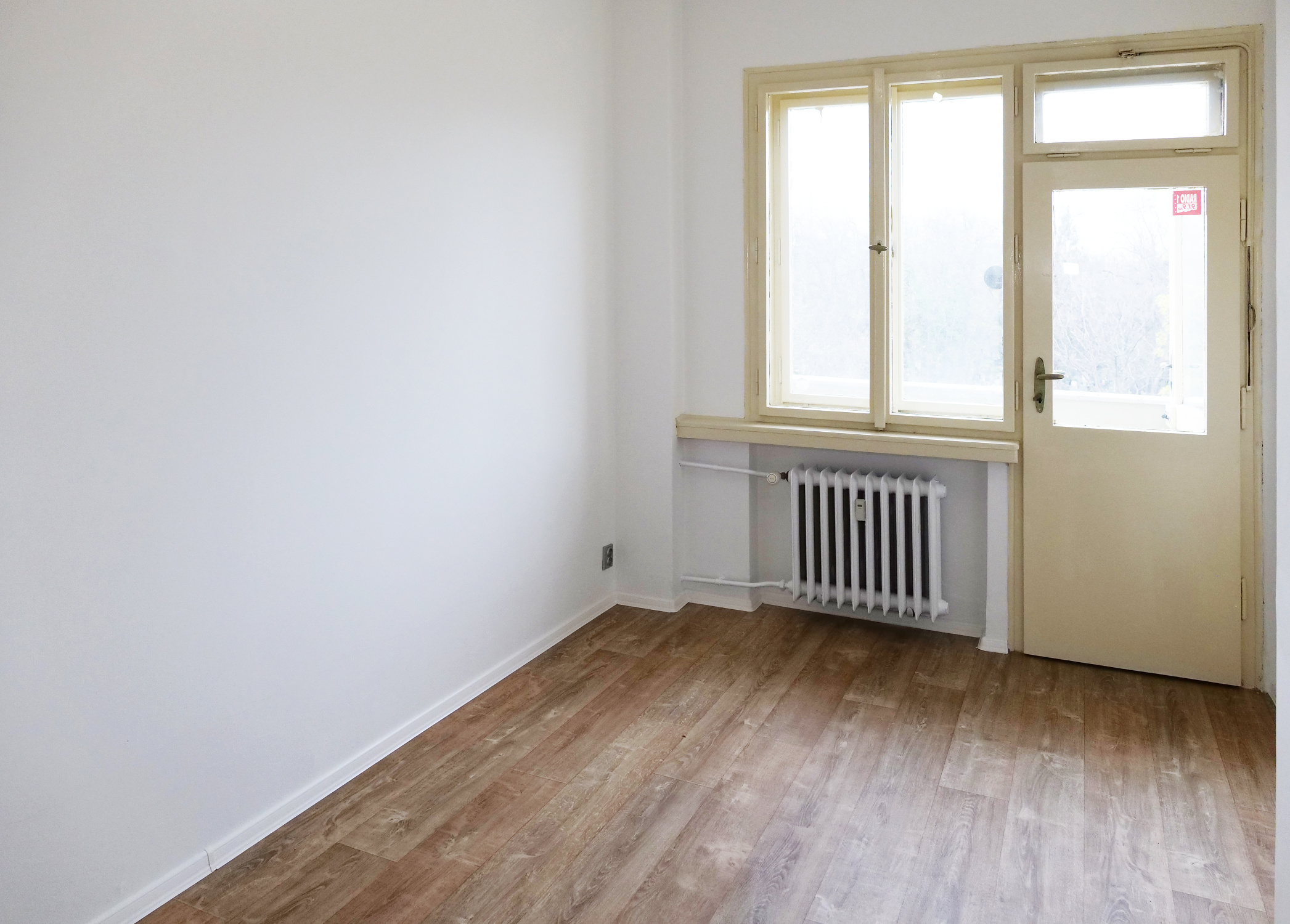 Podlahy: v předsíni a dvou pokojích parkety, v pokoji s lodžií vinyl, v koupelně a kuchyni dlažba. Teplo a teplá voda jsou zajištěny centrálně.