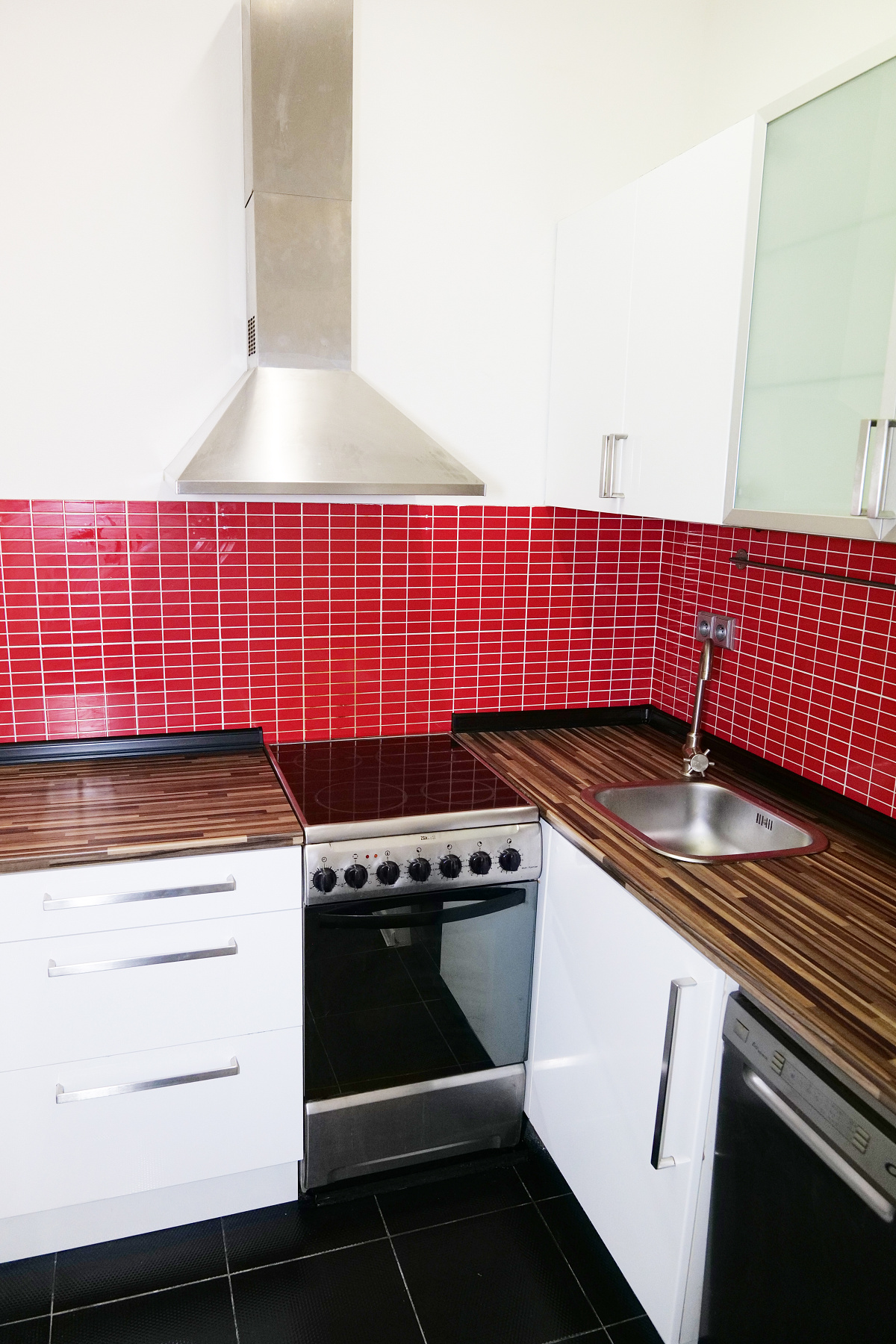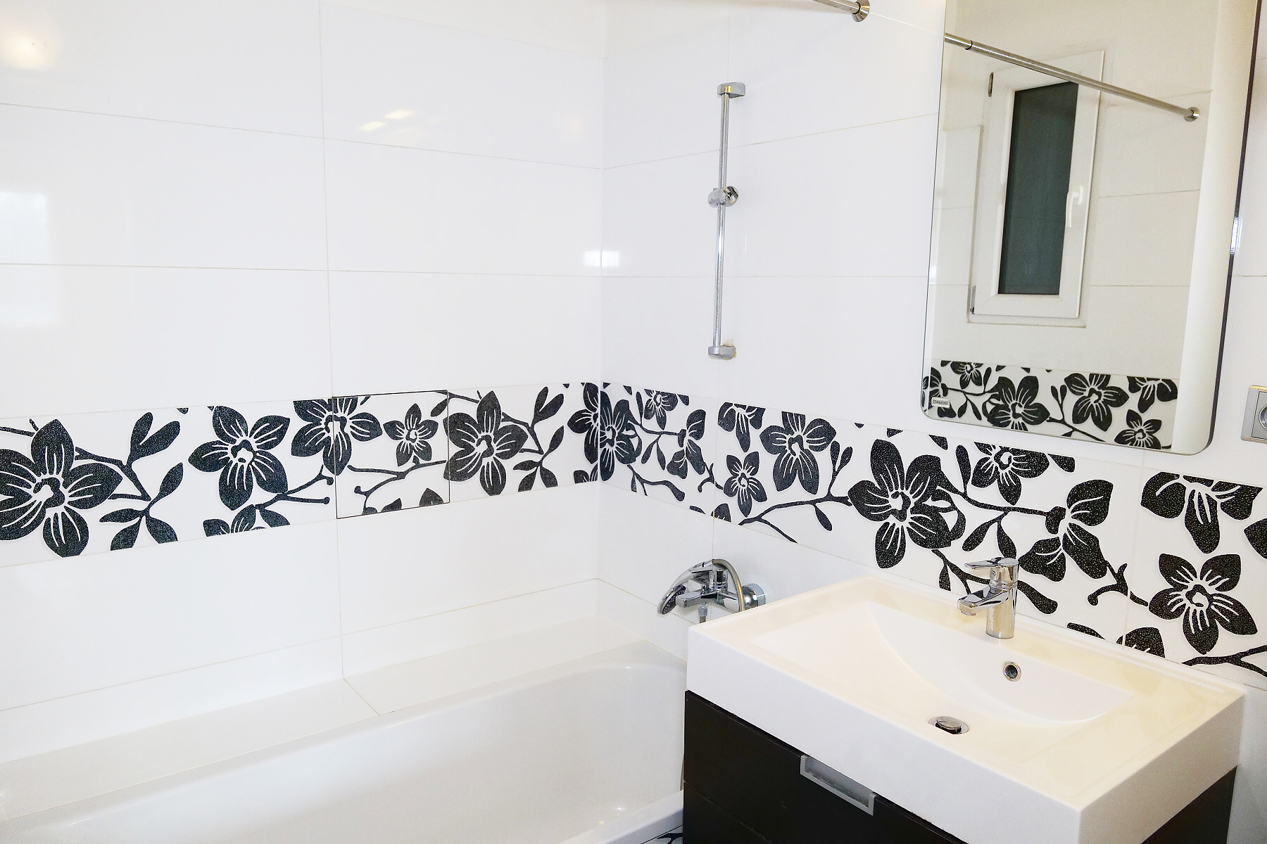 Kuchyňská linka je vybavena dřezem, elektrickým sporákem se sklokeramickou varnou deskou, digestoří a myčkou na 6 sad nádobí. Koupelna je zařízena vanou, umyvadlem s koupelnovou skříňkou, topným žebříkem a místem s připojením pro pračku. Samostatné WC je zařízeno závěsnou mísou a umyvadélkem.