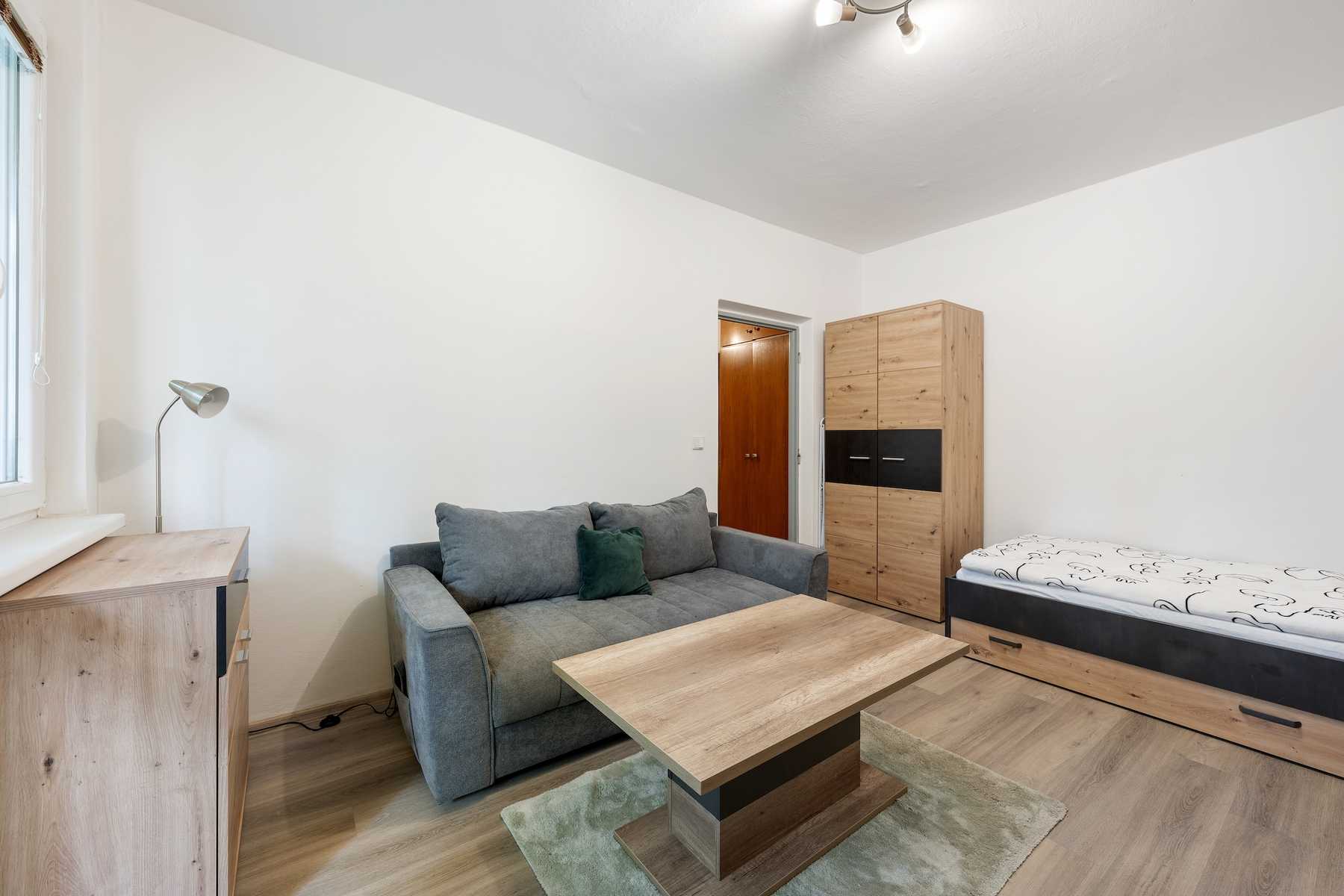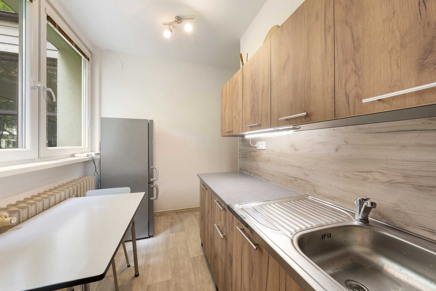 Pěkný družstevní byt o velikosti 1+1 je situován v 1.NP panelového bytového domu s výtahem. Celková podlahová plocha bytu dle evidenčního listu činí 35,9 m² (včetně lodžie a sklepu). Dle aktuálně provedeného digitálního měření činí obytná plocha bytu 31 m² a lodžie má plochu 3 m². K bytu patří sklep v 1.PP domu o výměře cca 1,9m².