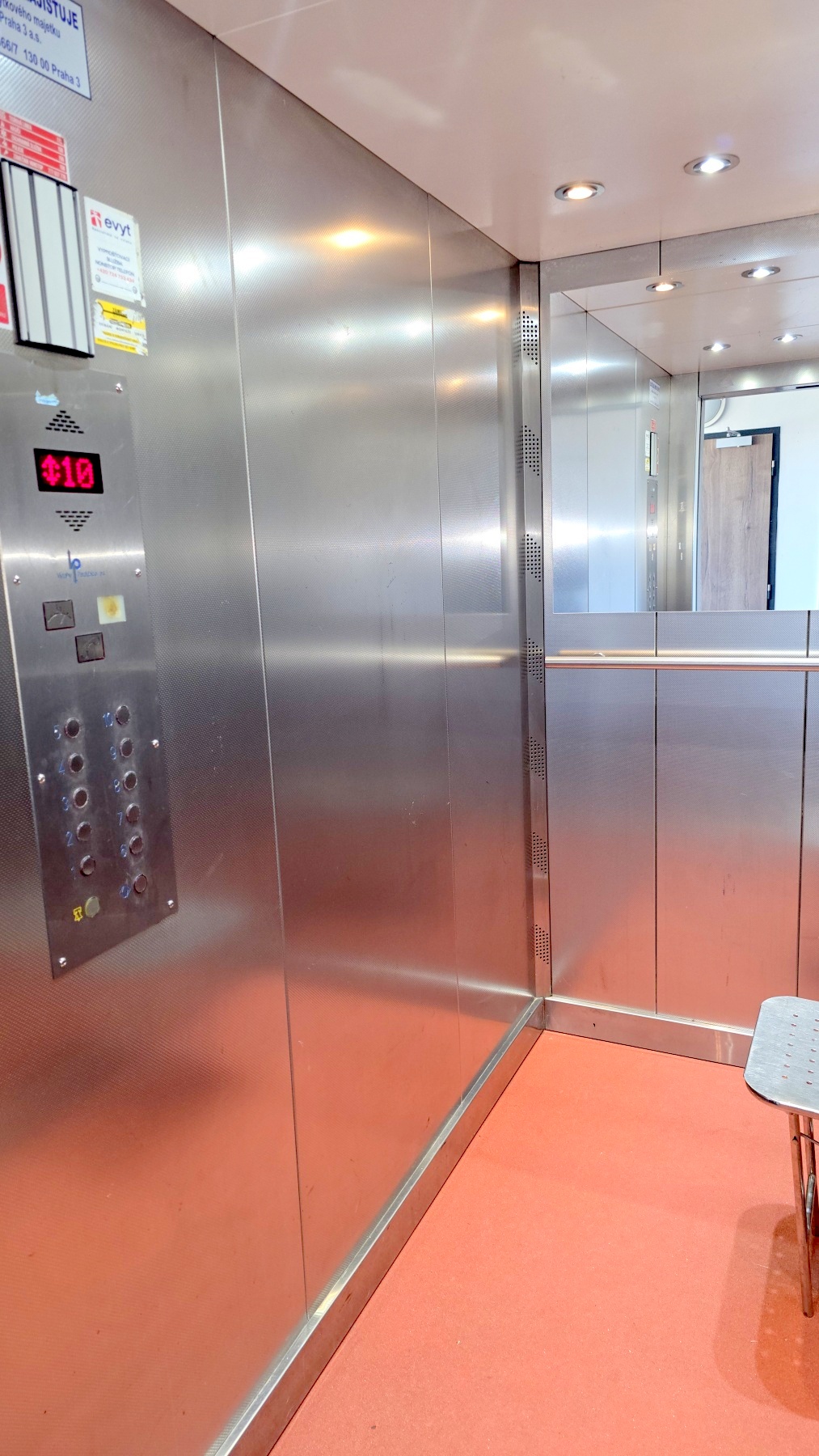 Byt se nachází v 9. patře desetipodlažního nově zrekonstruovaného domu s výtahem.