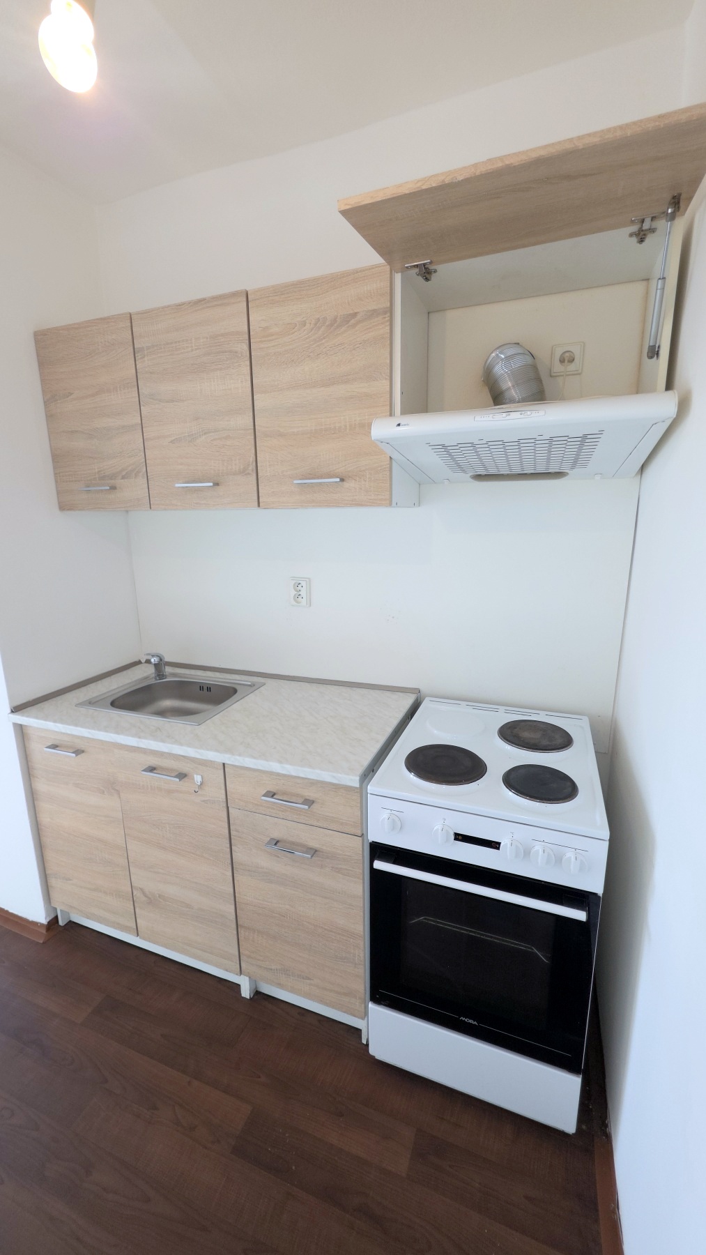 Kuchyňský kout je vybaven kuchyňskou linkou s dřezem, odtahovou digestoří a elektrickým sporákem s troubou. Koupelna je zařízena sprchou, umyvadlem, a místem pro připojení pračky. Samostatné WC je vybaveno kombi mísou.