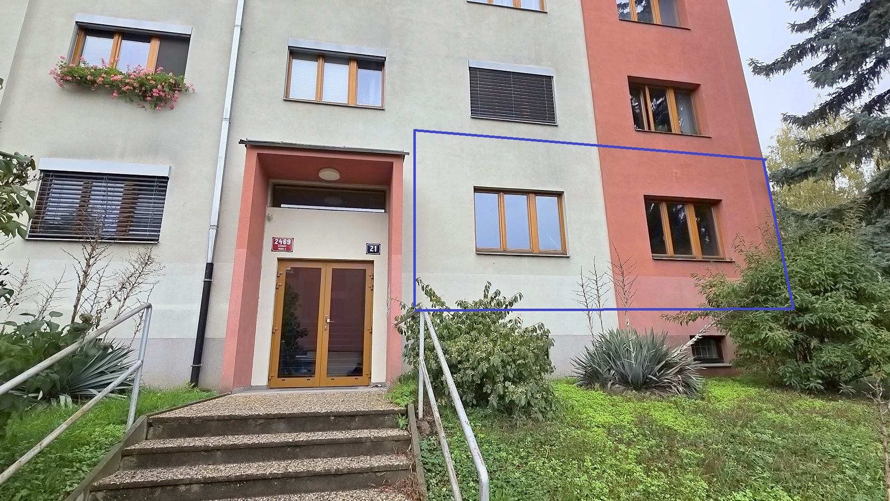 Bytová jednotka 3+1 se nachází ve zvýšeném přízemí domu.