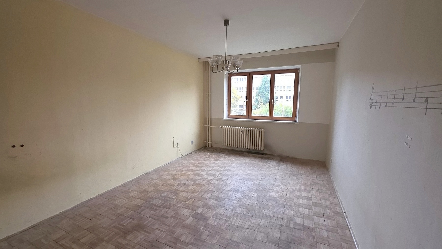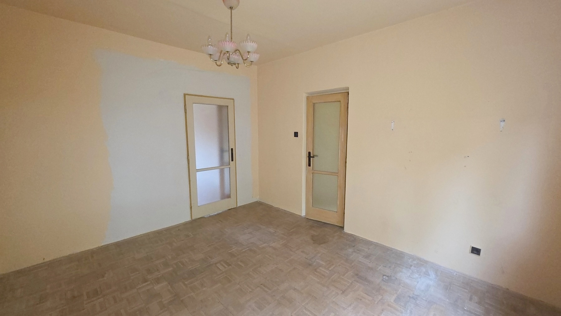 Podlahy: v pokojích původní mozaikové lamelové parkety, v předsíni a kuchyni PVC, v koupelně a WC dlažba Topení a teplá voda jsou zajištěno dálkově. V bytě je odpojena dodávka elektrické energie, nutná revize. Byt je nutno zrekonstruovat s ohledem na dnešní standardy a materiály.