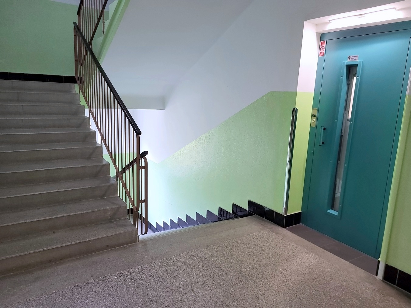 Byt po rekonstrukci se nachází ve 4. patře zrekonstruovaného cihlového domu z r. 1960 s výtahem do 3. patra.