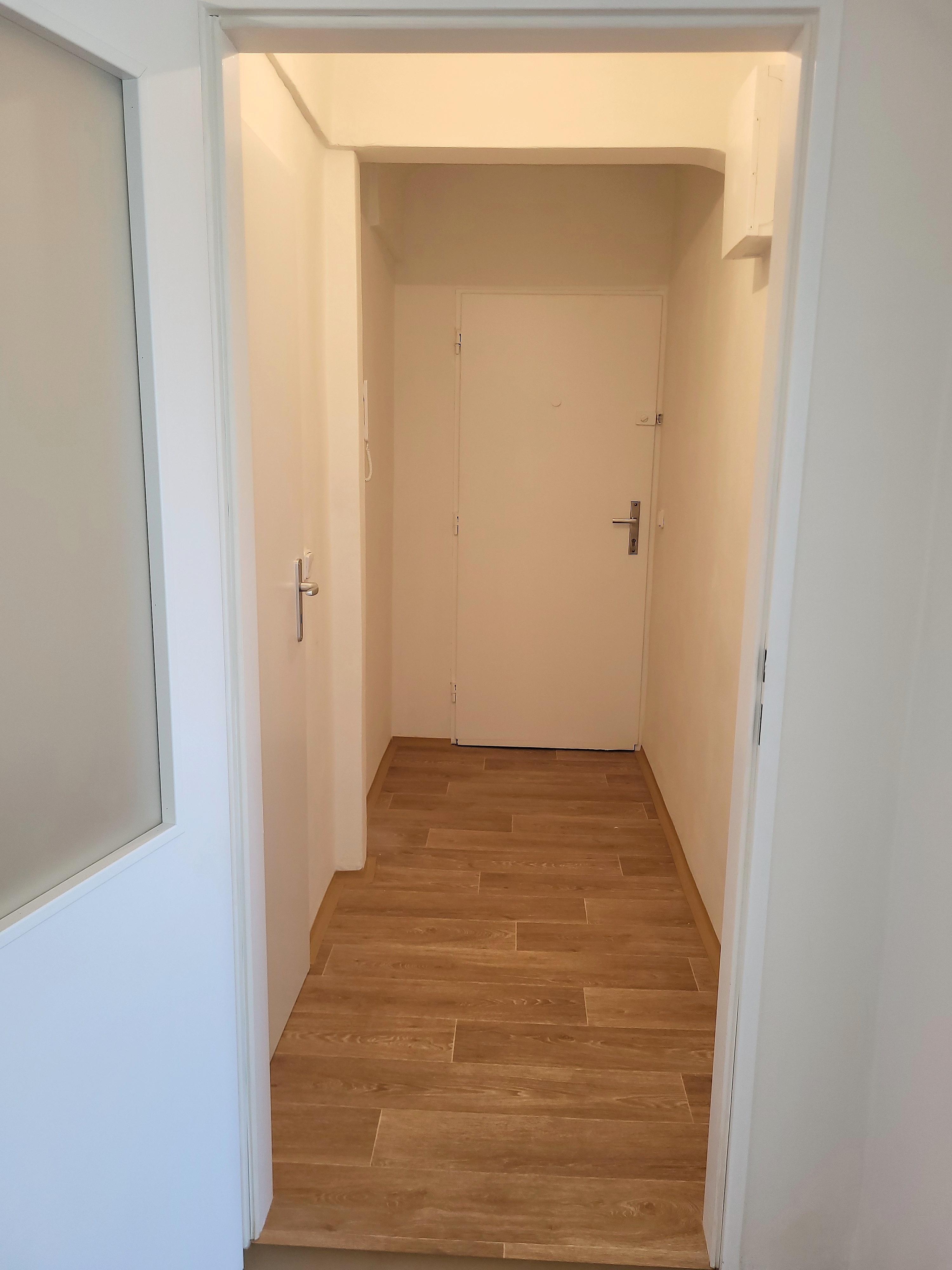 Dispozice: z chodby domu se vchází do předsíně. Z předsíně je vstup do WC a dále do pokoje, ze kterého je vstup do ložnice, kuchyňského koutu a francouzským oknem na terasu. Okna jsou orientována na sever do zeleného vnitrobloku. K bytu patří zděný sklep, který se nachází pod uzamčením ve společných prostorách domu v 1. PP. K užívání je za domem udržovaná zahrada s lavičkami a zelení, která je nejpěknější v celém bloku.