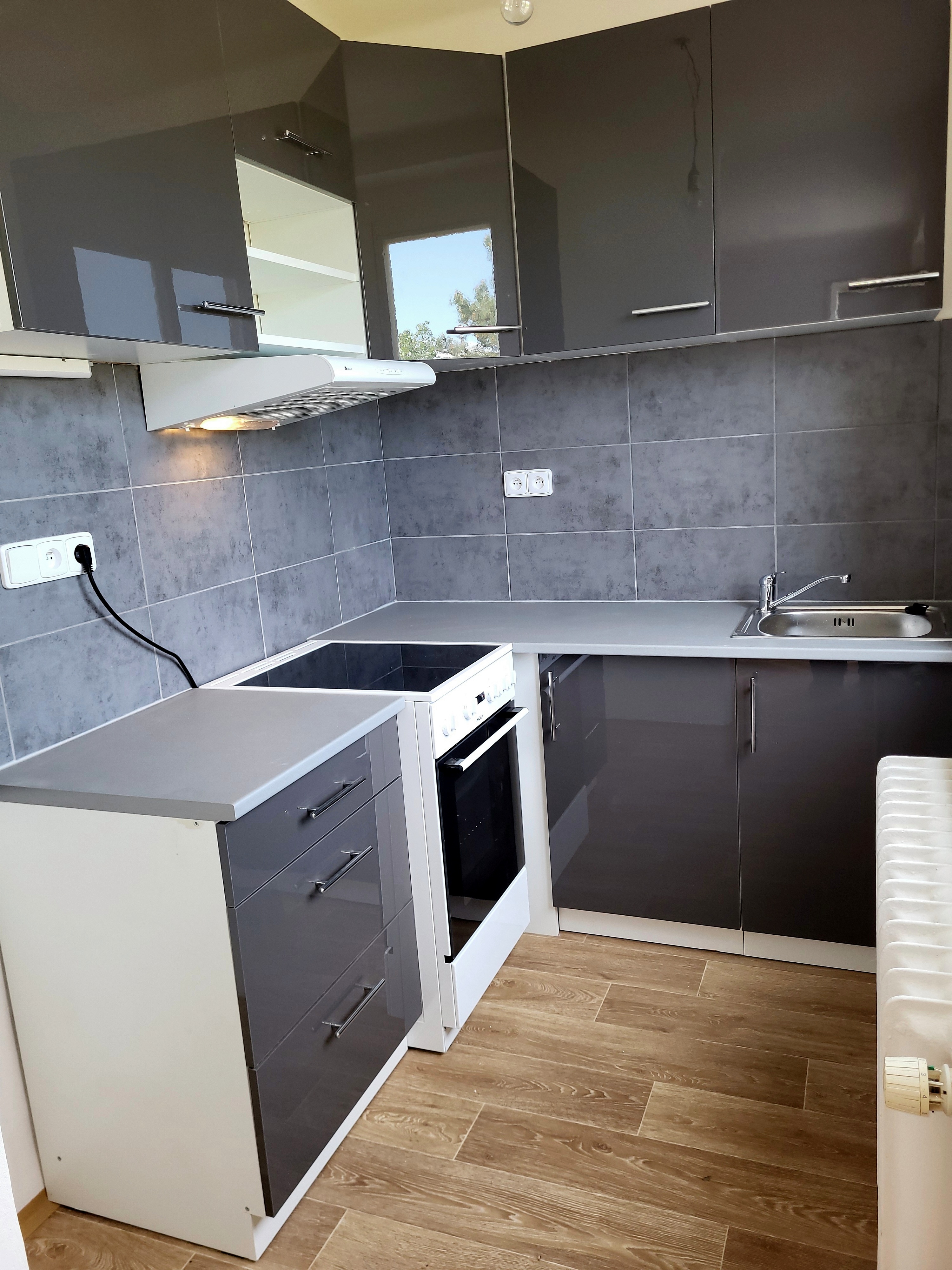 Kuchyňská linka je vybavena dřezem, digestoří, elektrickým sporákem se sklokeramickou deskou a troubou. V lince je místo pro vestavnou myčku a příprava na její připojení, vedle linky je místo pro lednici.