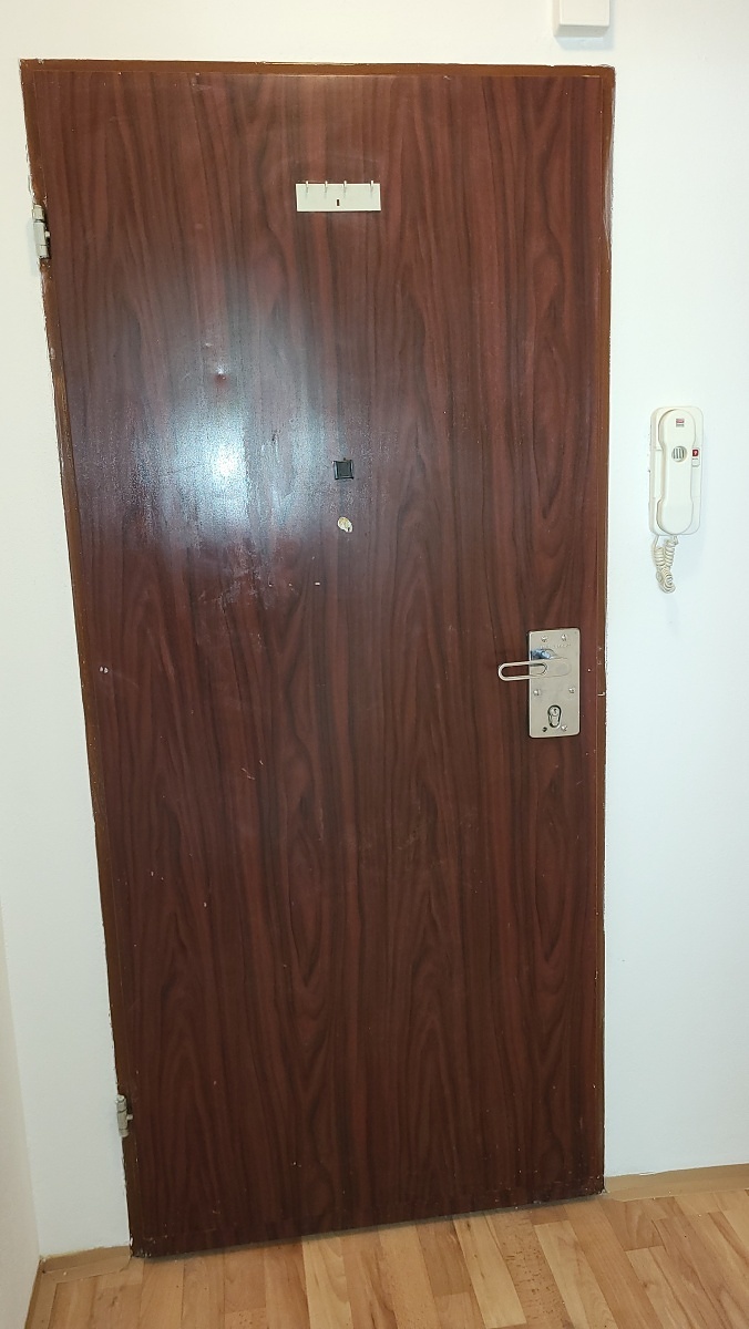Dispozice: z chodby domu se vchází do předsíně, ze které je vstup do koupelny s WC a pokoje. Pokoj má okno na jih do ulice.