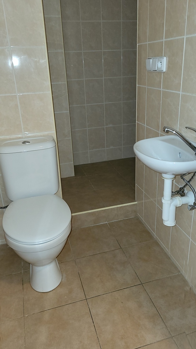 Kuchyňská linka je vybavena dřezem, kombinovaným sporákem a digestoří. V koupelně je zděný sprchový kout, dále umyvadlo a kombi WC.