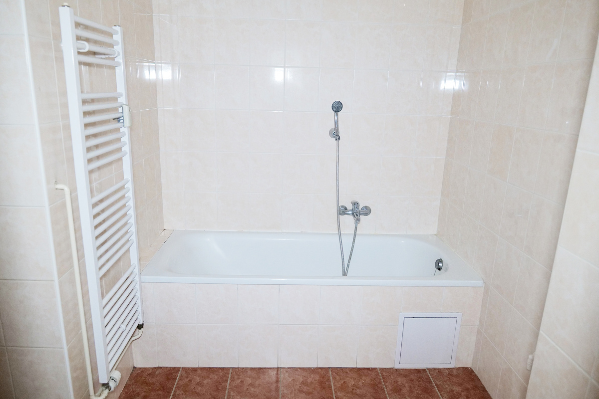 Kuchyňská linka je vybavena dřezem, plynovým sporákem s troubou a digestoří. Koupelna je zařízena vanou, umyvadlem, zrcadlem, topným žebříkem a místem s připojením pro pračku. Samostatné WC je zařízeno kombi mísou.