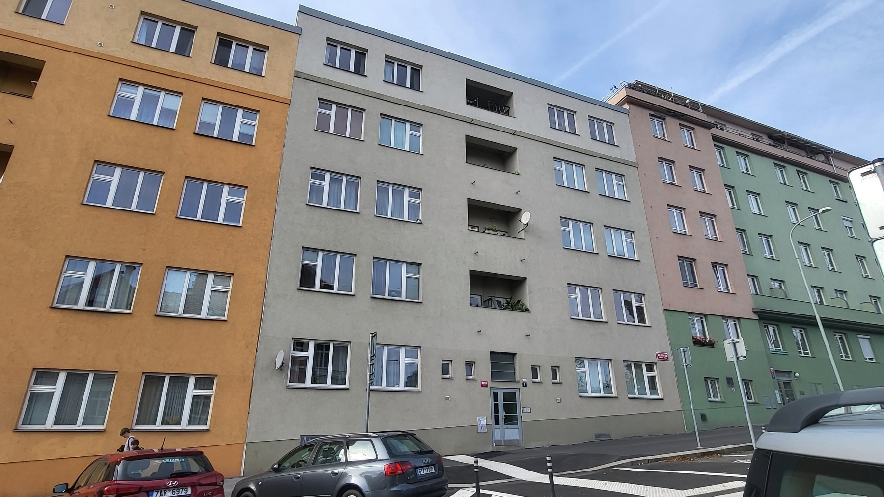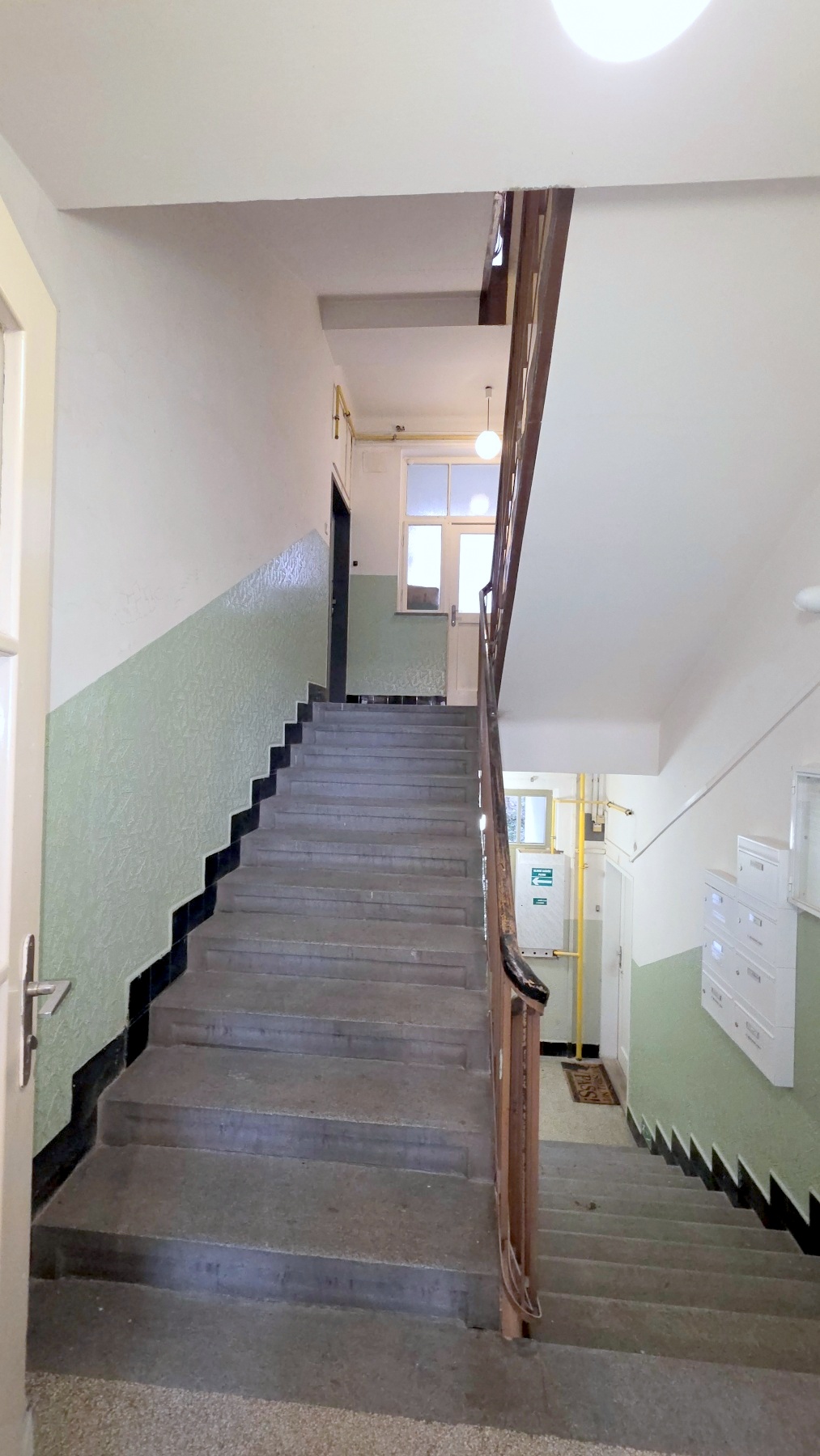 Byt se nachází ve 3. patře zrekonstruovaného prvorepublikového šestipodlažního domu bez výtahu.