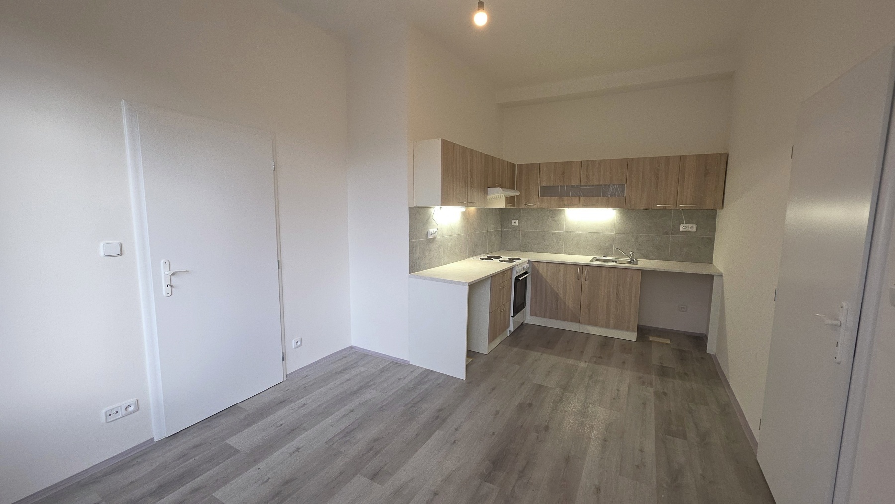 Kuchyňská linka je vybavena dřezem, el. sporákem s troubou a digestoří. Pod linkou jsou místa pro myčka a pračku a jejich připojení. Koupelna je zařízena sprchou, umyvadlem a radiátorem ÚT. Samostatné WC je vybaveno kombi mísou.