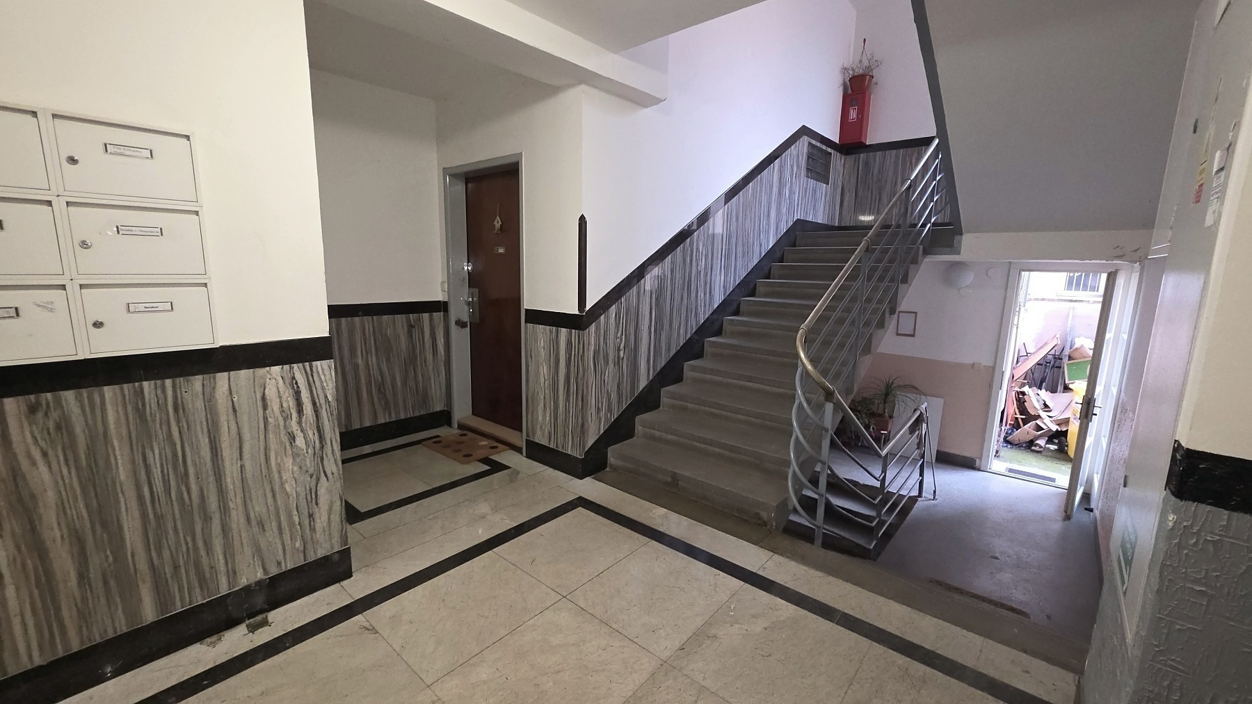 Byt se nachází ve přízemí šestipodlažního prvorepublikového činžovního domu s výtahem.