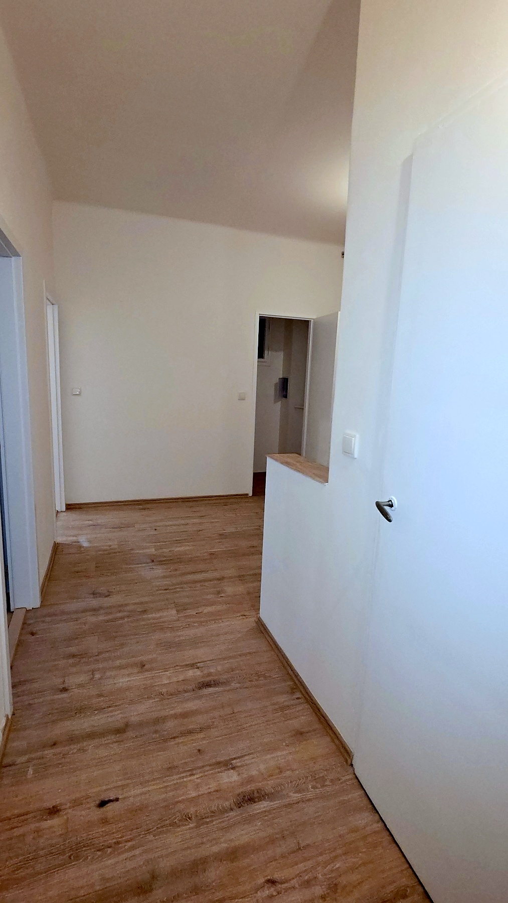 Dispozice: z chodby domu se vchází do haly, ze které je vstup do obývacího pokoje, ložnice (bývalá kuchyň), koupelny, WC a menší komory. Z ložnice je pak dále vstup do bývalé spíže a bývalého pokojíku pro služku, nyní větší komory. Místnosti mají okna na východ do vnitrobloku.